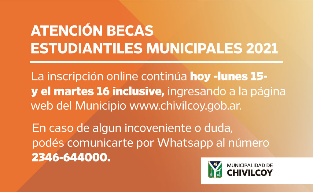 La inscripción online para las Becas Estudiantiles 2021 continuará hoy lunes 15 de marzo y mañana martes 16, a través…
