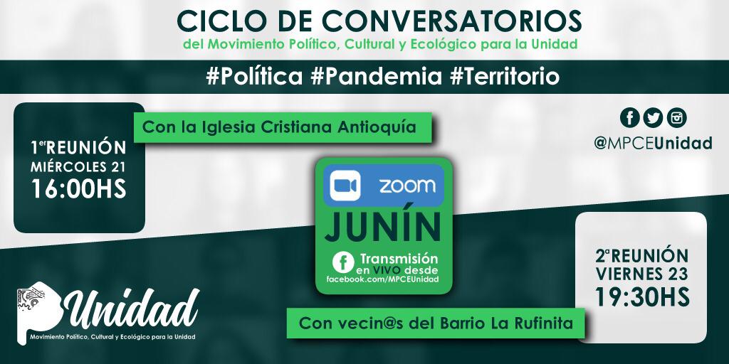 El Movimiento Político, Cultural y Ecológico para la Unidad realizará un Ciclo de Conversatorios cuyos ejes serán: Política, Pandemia y…