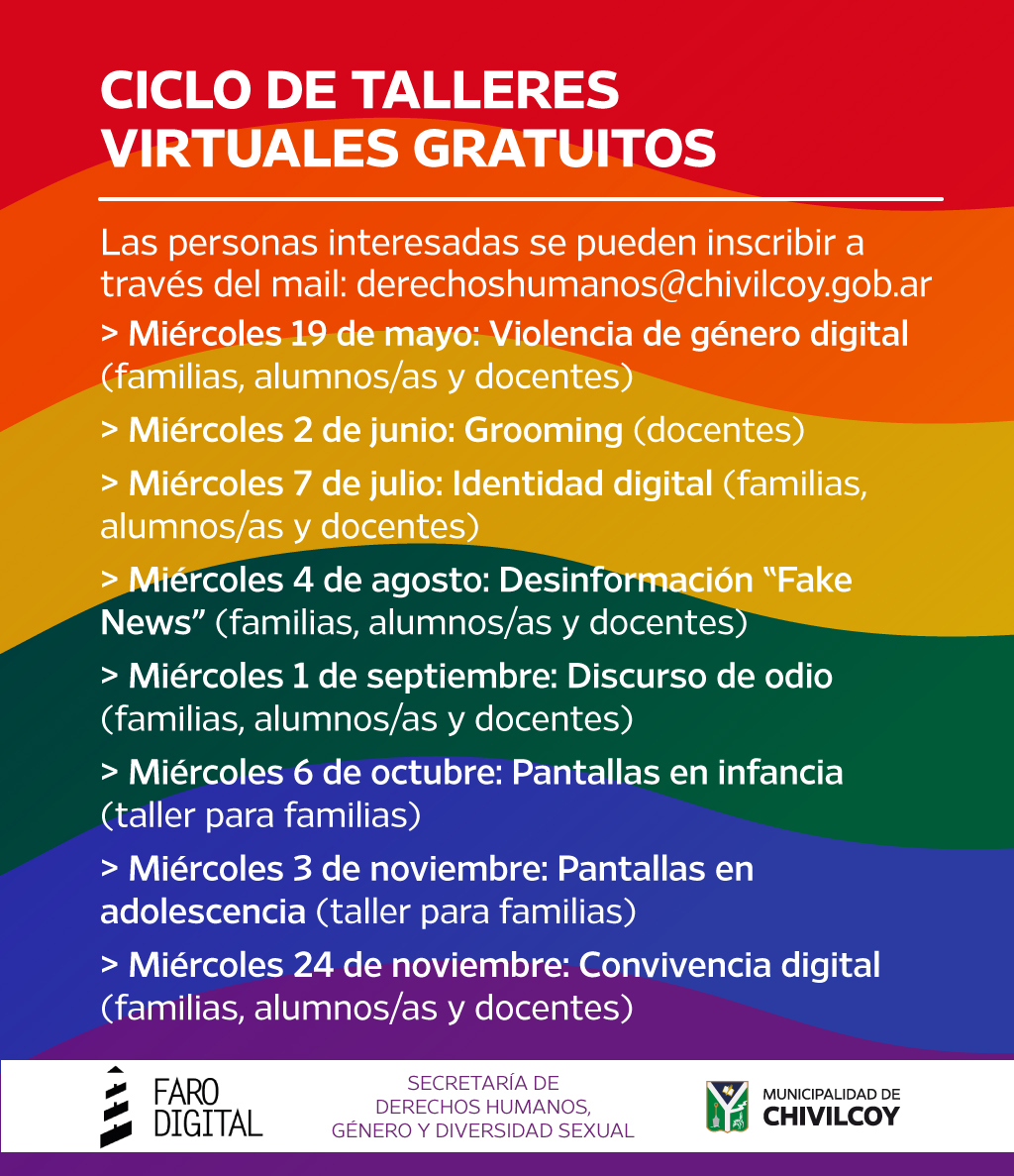 Se dictarán Talleres virtuales sobre la responsabilidad y la conciencia de los espacios digitales La Secretaría de Derechos Humanos, Género…