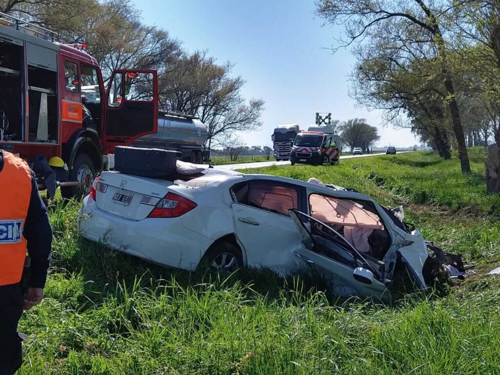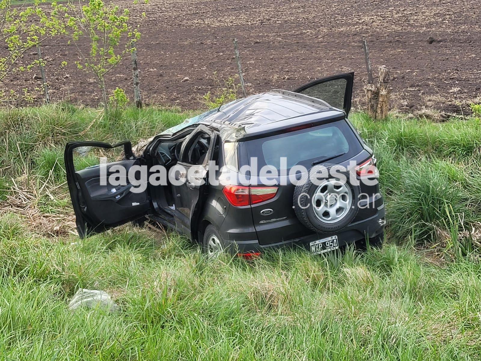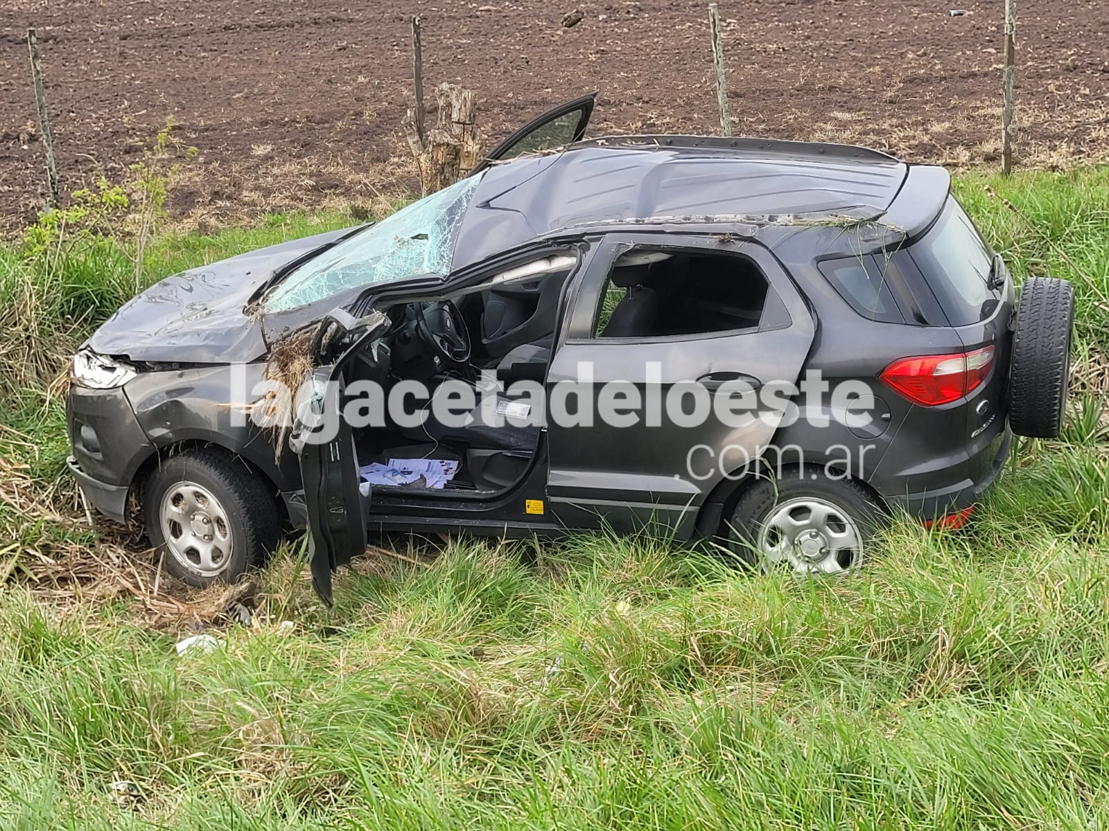 A las 17.35 del domingo, se alerta por un despiste y vuelco en la Ruta Nacional 5. Personal policial, SAME…