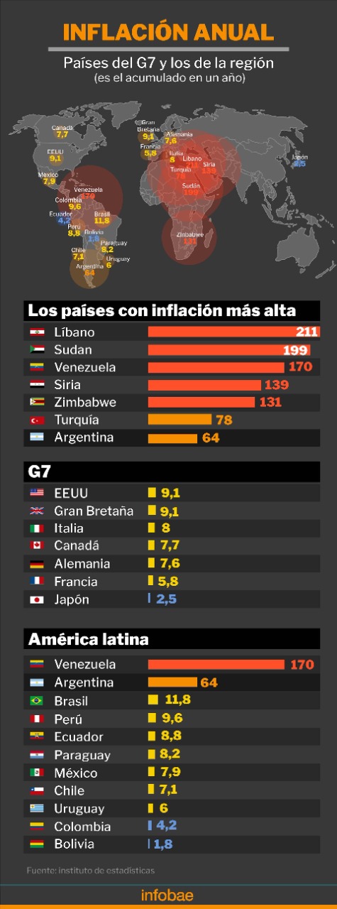 Detrás de Líbano, Sudán y Venezuela, Argentina se consolidó entre los países del mundo con la inflación más alta. Con…