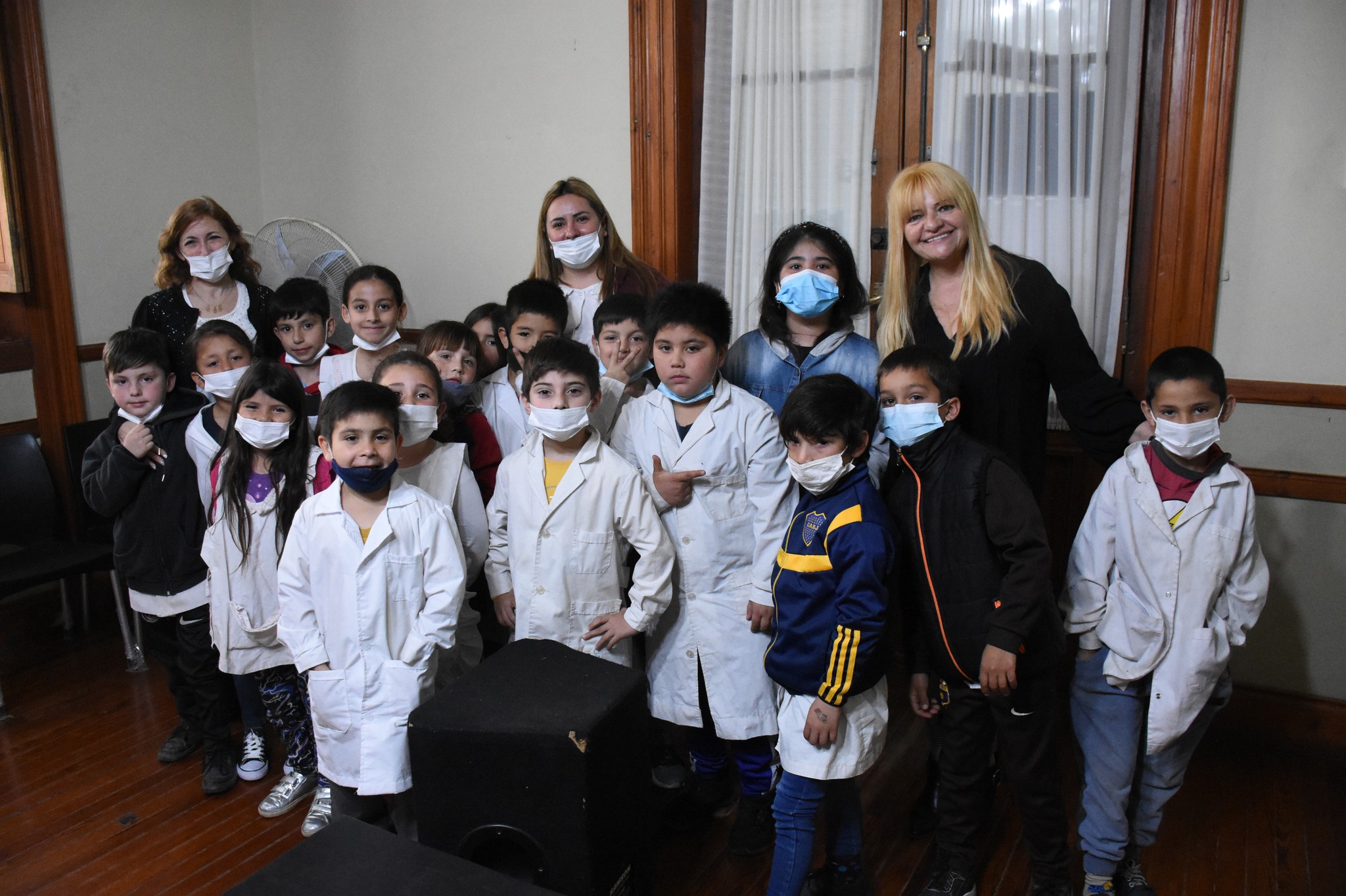 La jefa de Gabinete, Marcela Sabella, recibió a los estudiantes y a las docentes Claudia Domínguez Luna y Marina Debesa…