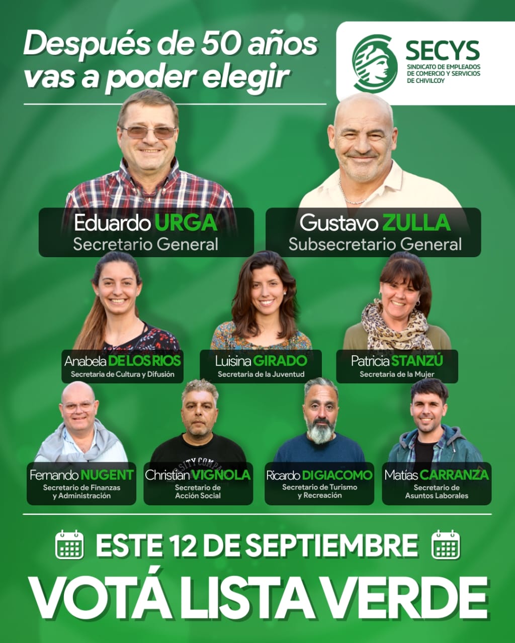 Eduardo Urga y Gustavo Zulla encabezan la Lista Verde para las elecciones del Sindicato de Empleados de Comercio y Servicios…