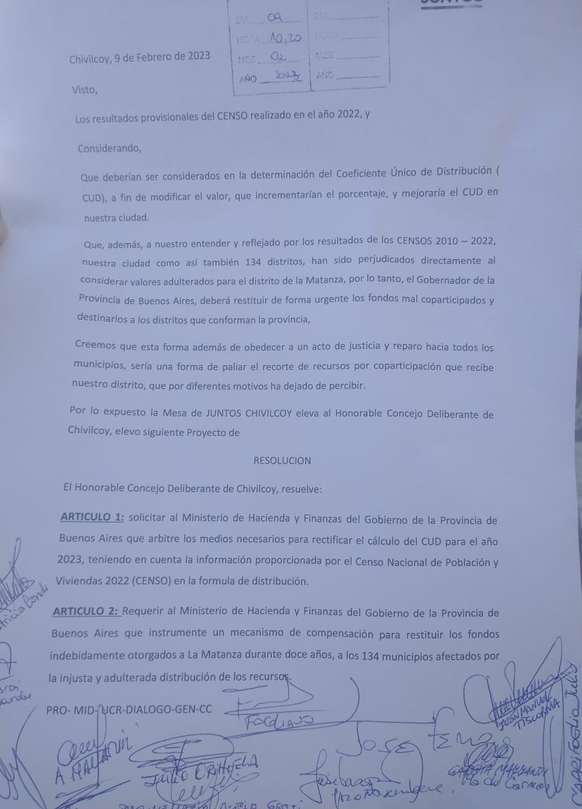 Luego de conocerse los datos del Censo 2022, desde el espacio político de Juntos, se presentó un pedido formal al…