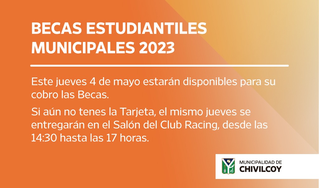 Jueves 4: Día de cobro de las Becas Estudiantiles Municipales y de retiro de Tarjetas La Oficina de Becas informó…