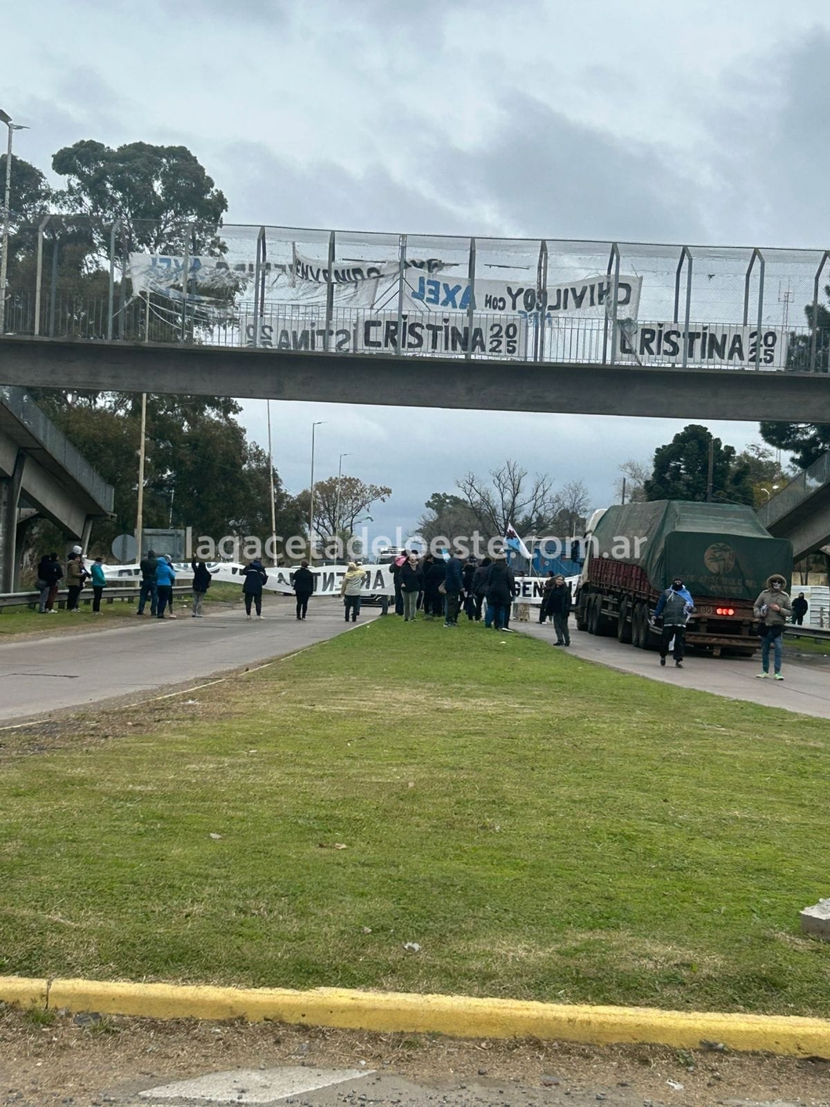 Manifestantes se hicieron presentes en la rotonda de la Ruta Nacional 5, con pancartas en apoyo a Cristina Fernández, cortando…
