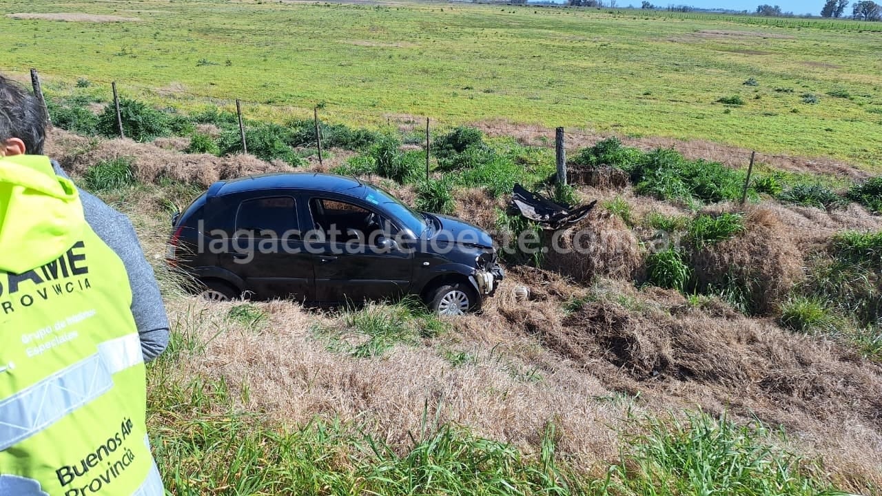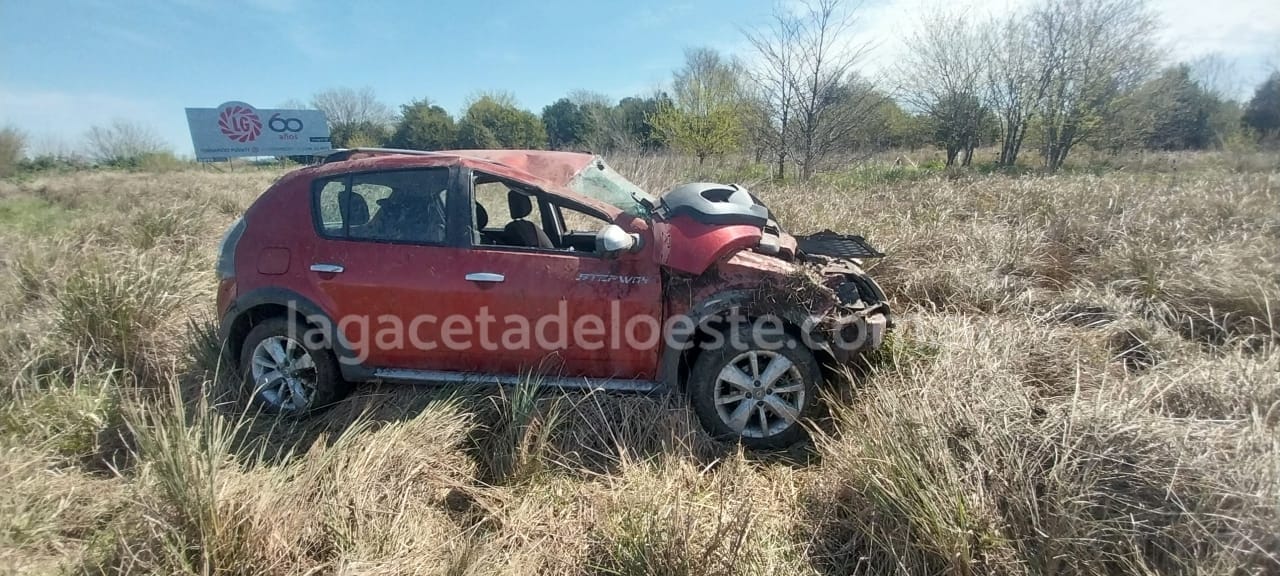 Volcó un auto en la Ruta 5 y sus dos ocupantes domiciliados en Chivilcoy resultaron ilesos