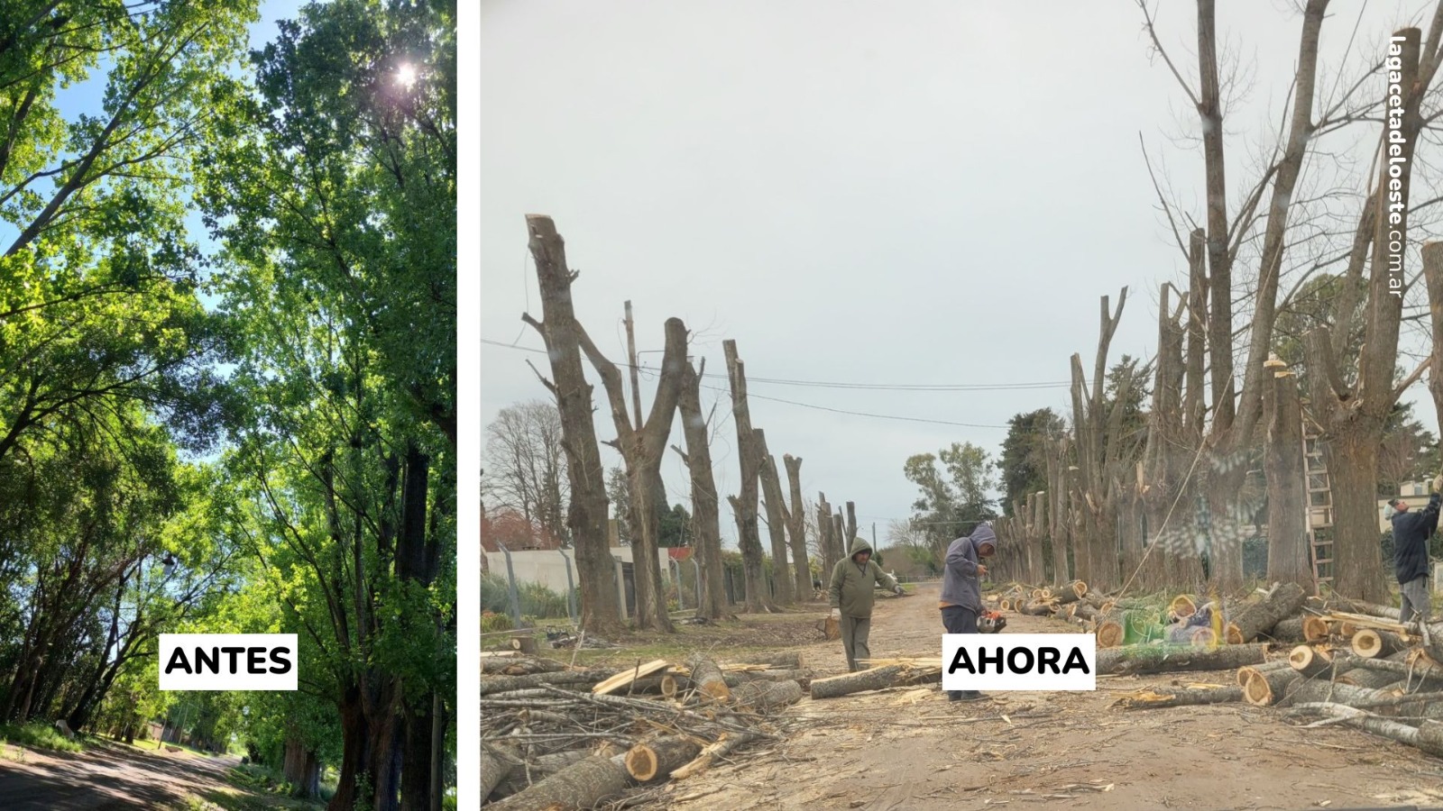 Talaron unos hermosos álamos que bordeaban la calle 576 en nuestra ciudad. Ya hace algún tiempo una vecina, Noelia Bordon, había advertido sobre la intención de talarlos y lamentablemente se concretó.