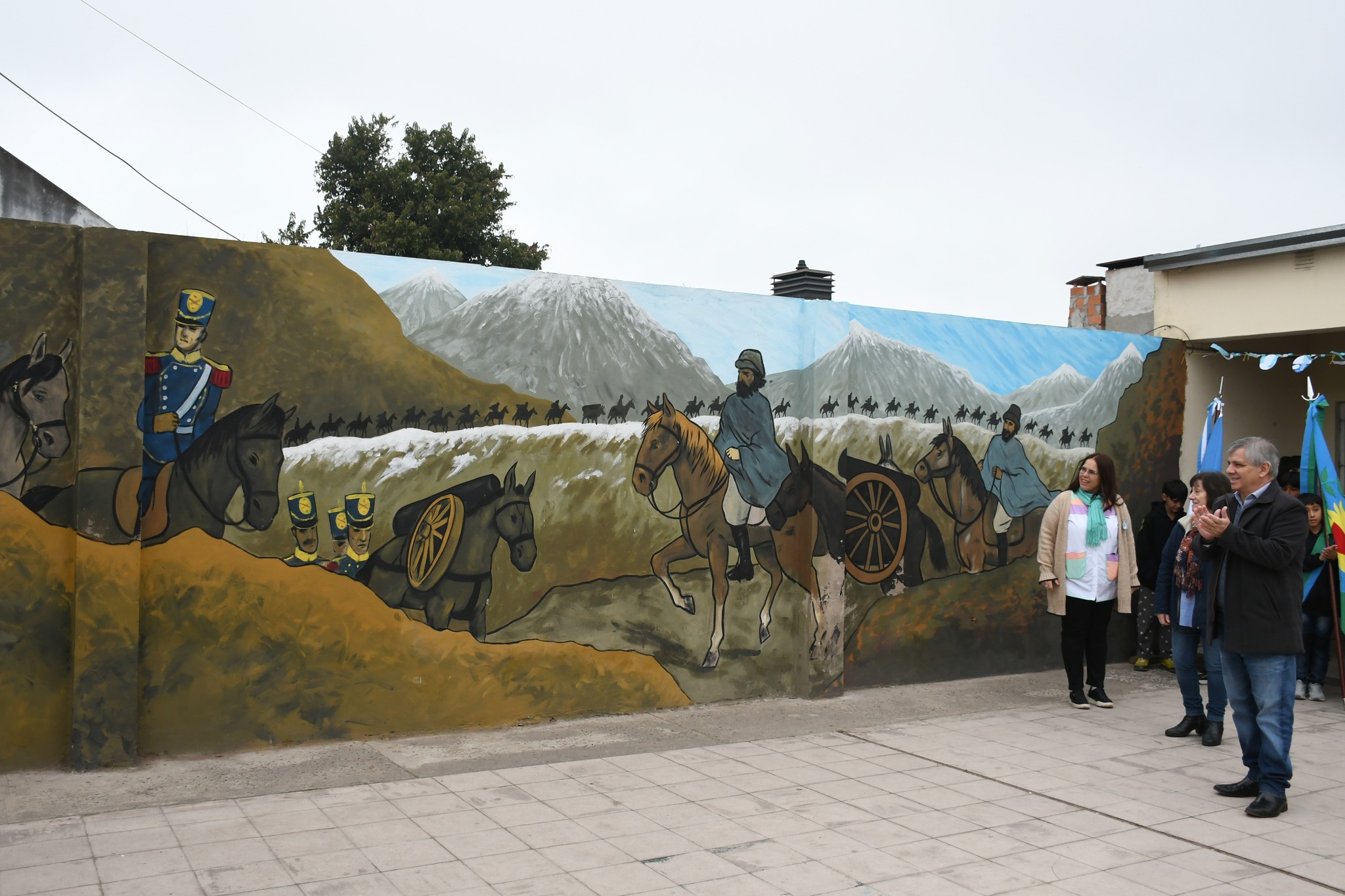La comunidad educativa de la Escuela Primaria N°49 llevó adelante un emotivo acto en homenaje al General José de San Martín. Este acto incluyó la inauguración de un mural realizado por el artista Marcelo Mosqueira. Estuvo presente el intendente Guillermo Britos, junto a funcionarios municipales y autoridades educativas.