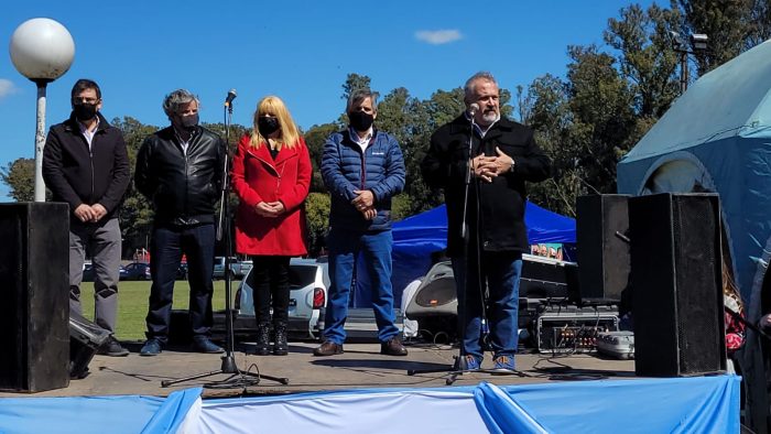 A la hora de dirigirse a los presentes, el jefe comunal, en primer lugar, le agradeció a la enfermera de la localidad, al empleado municipal y a los beneficiarios de las Becas Laborales y al delegado Gustavo De Vito por su trabajo en la pandemia.