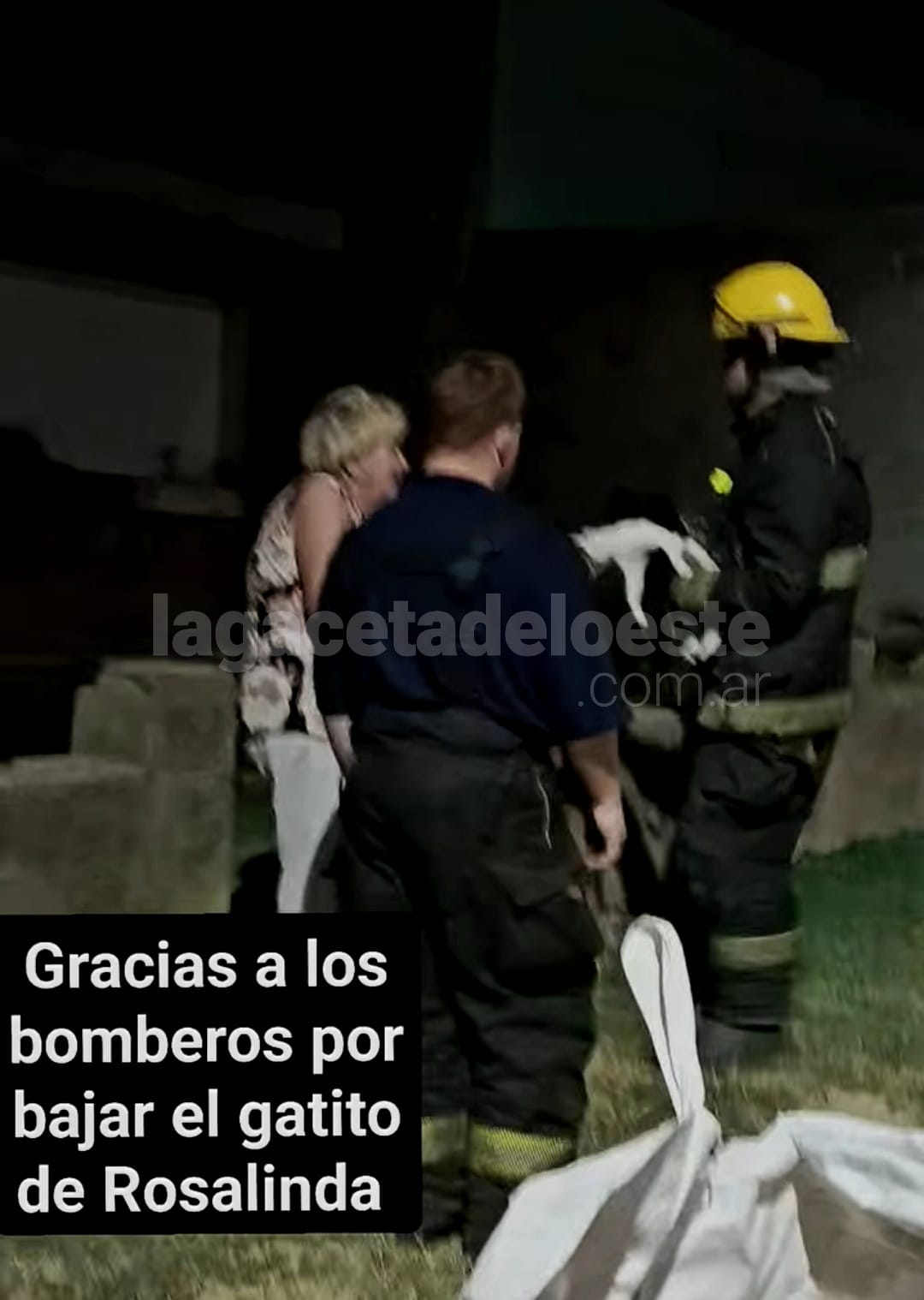«Gracias bomberos, con que tranquilidad y amor bajaron al gatito de mi vecina» expresó Gabriela quien fue testigo del rescate.