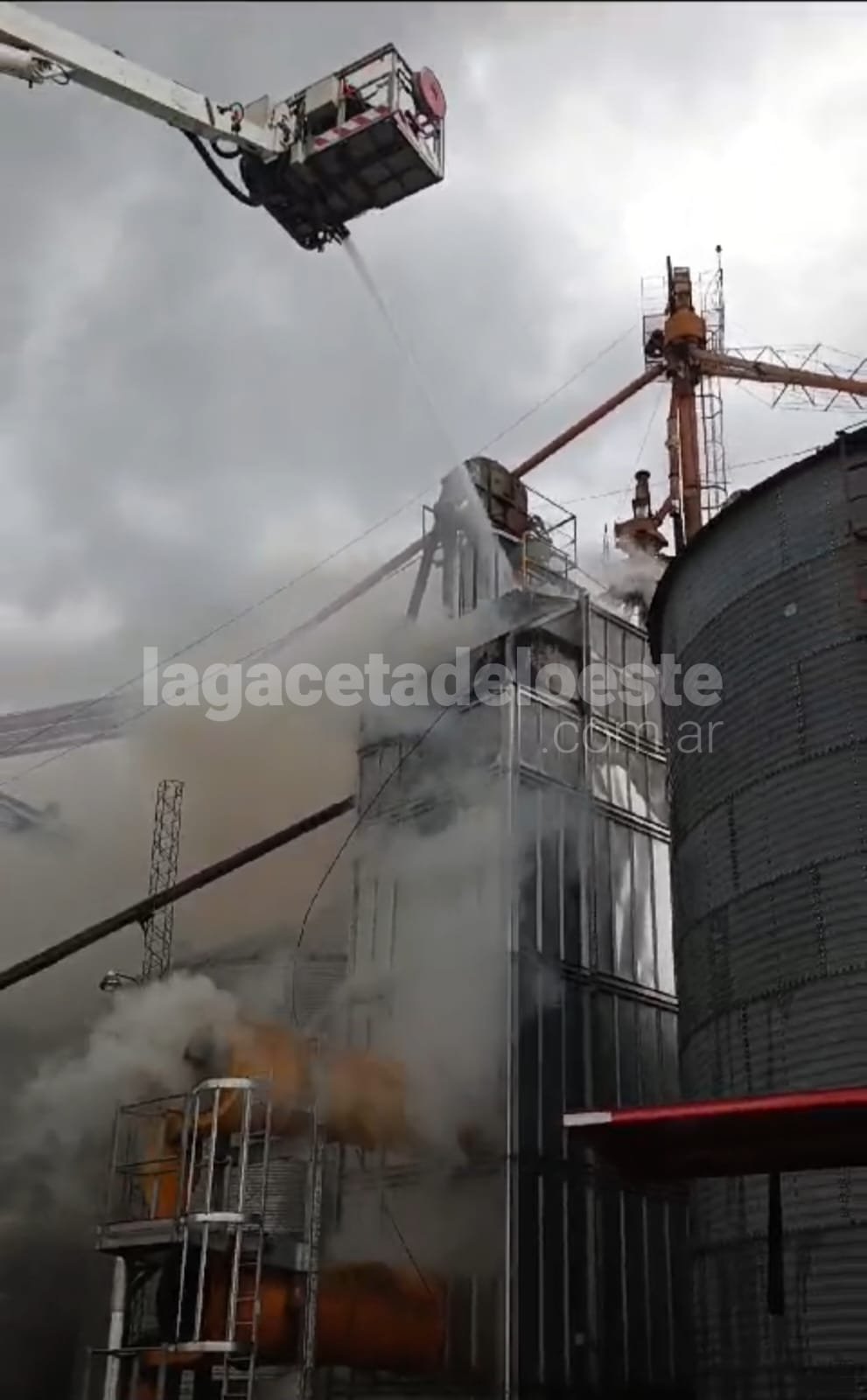 El Oficial Díaz a cargo, informó: «El Auxiliar Mayor Juan Alagia, al constatar que el incendio estaba declarado, desplaza el hidroelevador y un cisterna y más adelante se pide la colaboración de otros cisterna y de una unidad que llevó equipamiento y personal ya que es un incendio que demanda mucho trabajo. Estuvimos trabajando aproximadamente cinco horas porque hay que sacar cereal de la secadora mientras se va extinguiendo. Trabajamos con cinco unidades con 26 integrantes, más el personal que se quedó en la Central 29 en caso que se necesitara más integrantes».