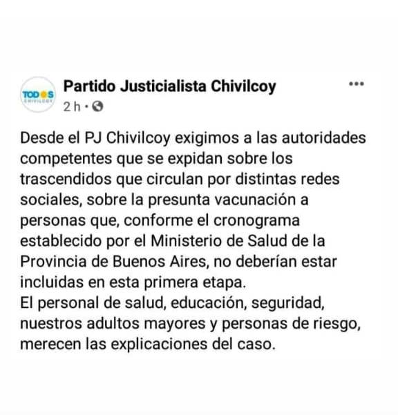 Desde el PJ Chivilcoy exigimos a las autoridades competentes que se expidan sobre los trascendidos que circulan por distintas redes…