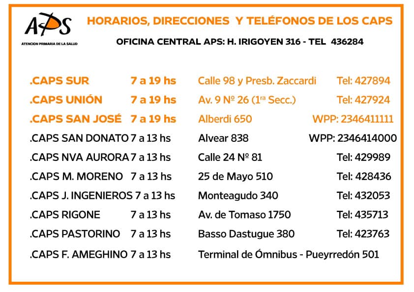 Tenemos el agrado de informales los nuevos canales de comunicación de los CAPS San José y San Donato. A partir de ahora vas a poder realizar tus consultas y/u obtención de turnos únicamente a través de WhatsApp. CAPS SAN JOSÉ: 2346-411111 CAPS SAN DONATO: 2346-414000 Así mismo, recordamos la grilla con horarios de atención y […]
