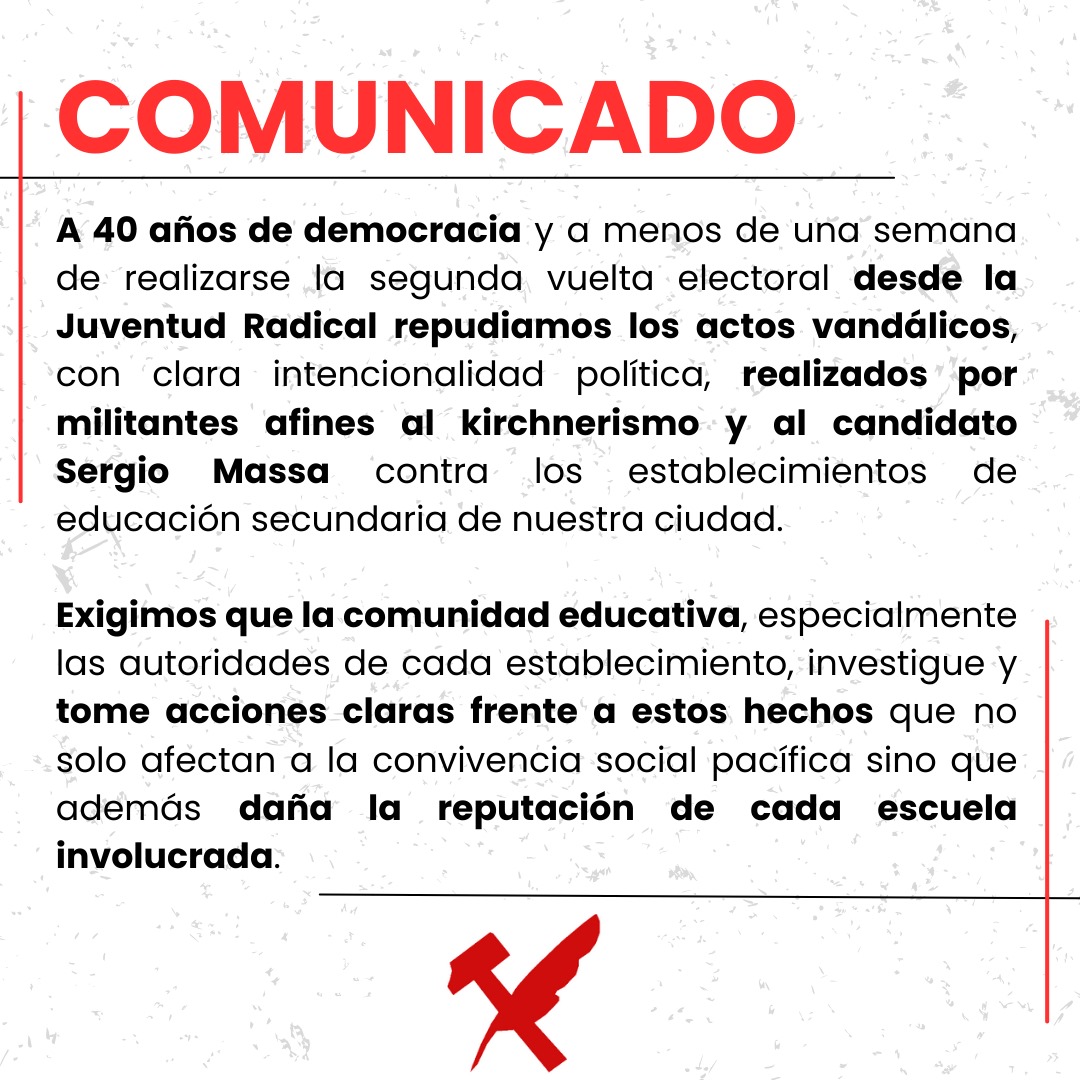 La Juventud Radical repudió lo sucedido en Escuelas Secundarias
