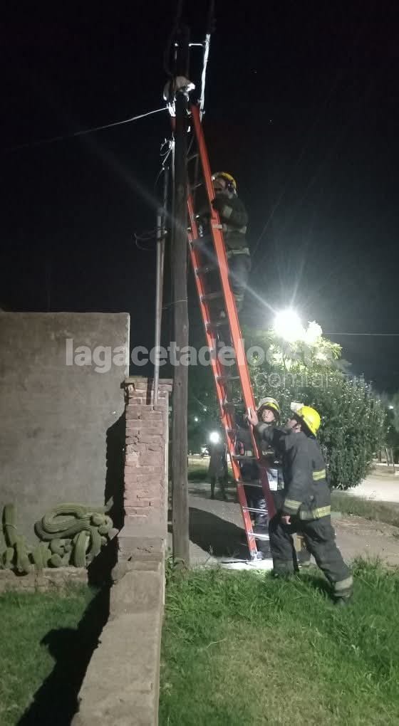 Bomberos rescataron a un gatito que estaba sobre cables