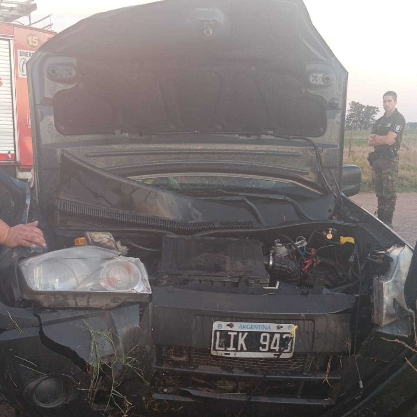 El automóvil era conducido por Juan Nicolás Udoy, de 42 años domiciliado el Chivilcoy , quien era acompañado por Griselda Quevedo , de 35 años domiciliada en la localidad de Rawson , partido de Chacabuco.