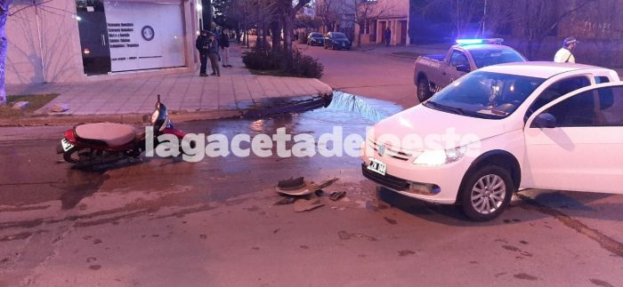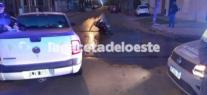 Pasadas las 18 horas del martes, una camioneta VW Saverio patente LZW044 que era conducida por Rogelio Guelffi, quien circulaba por calle Piran, colisionó con una moto Gilera 110 c.c. dominio 979LDW que cruzaba por calle San Martín.