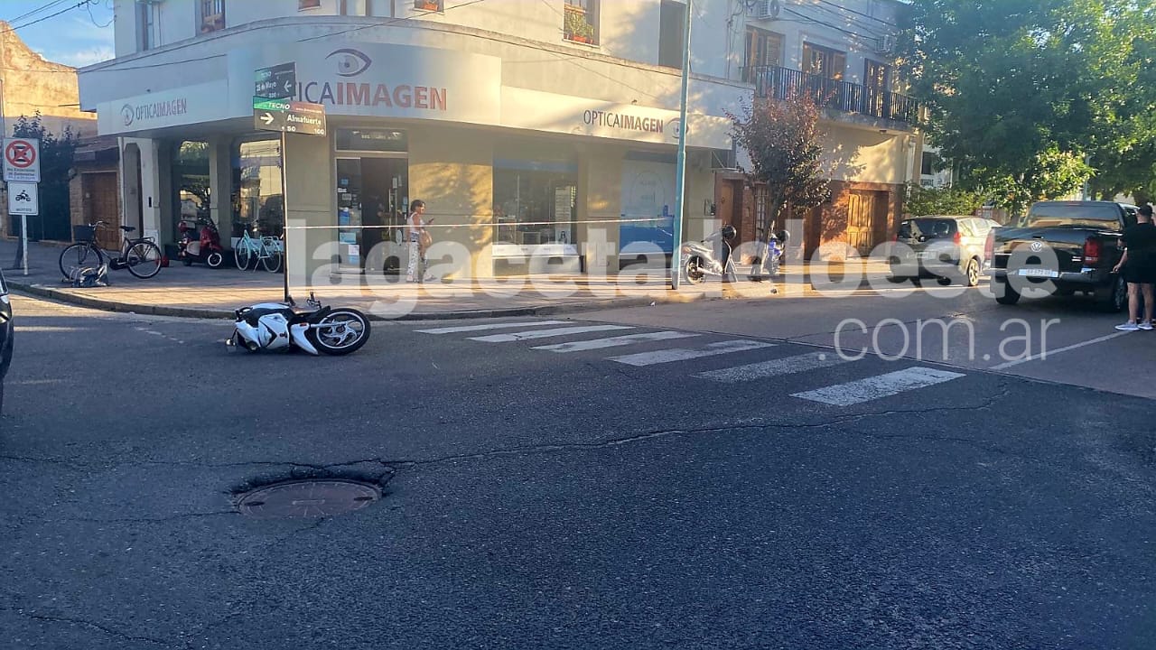 Aproximadamente a las 18.30 del lunes en la intersección de las calles 25 de Mayo y Almafuerte. Dos mujeres que circulaban en moto por calle 25 de Mayo hacia Plaza Moreno, fueron colisionadas por una camioneta Amarok que lo hacía por calle Almafuerte.