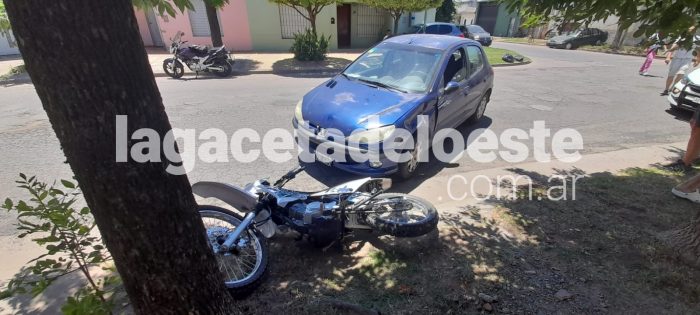 El día lunes, antes del mediodía, se produjo un choque entre un automóvil y un auto. Fue en la intersección de las calles Gral. Frías y Bomberos Voluntarios, entre un Peugeot FZB 689 conducido por Juliana Gallano y una moto Yamaha 125 cc. dominio colocado A076CIQ en la que circulaba Germán Ariel Lalli.