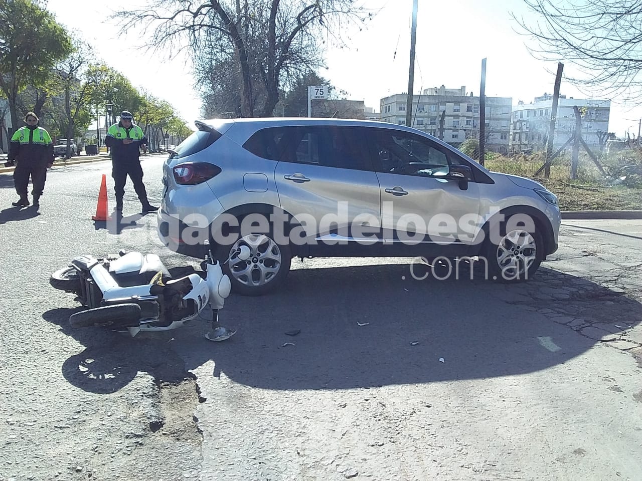 Una moto y una camioneta colisionaron en la mañana del jueves en Avenida Calixto Calderon y calle 75. Por razones que se tratan de establecer un vehículo marca Renault Captur dominio AB877SY que era conducido por Maria Cristina Alonso y una motocicleta Lucky Lion conducida por Aurora Barreda protagonizaron el siniestro vial en la mencionada intersección. –