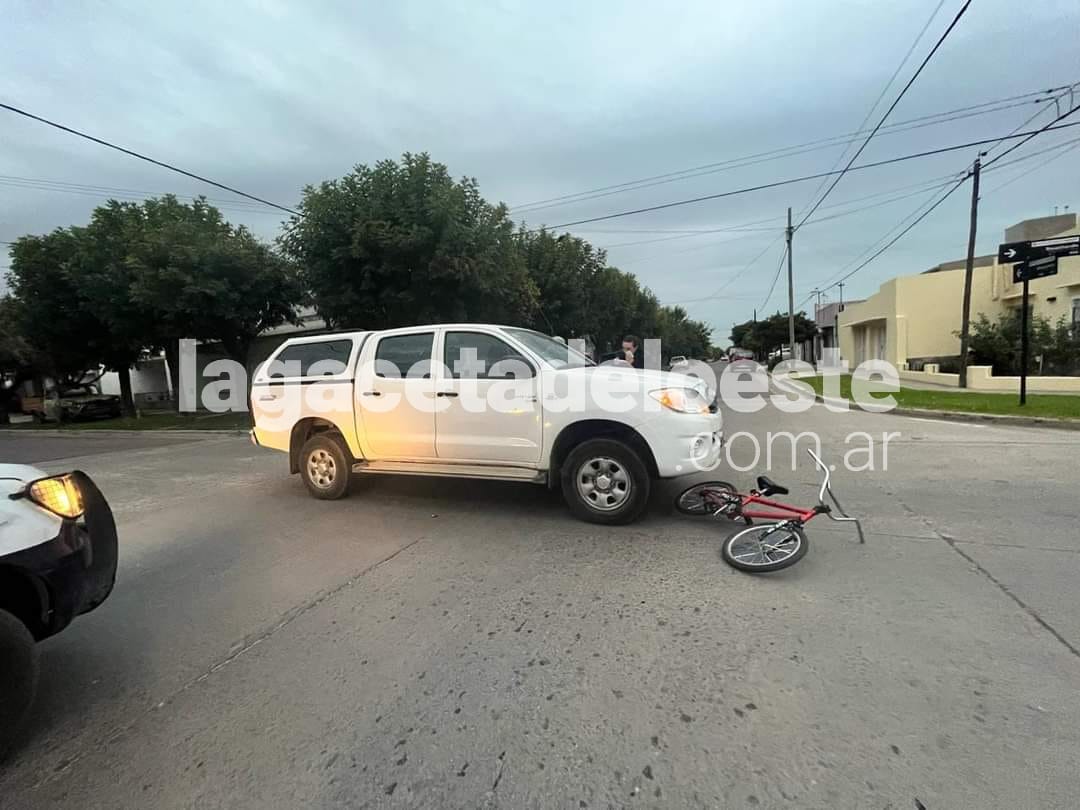 Poco antes de las 19 horas del miércoles, en la intersección de calles Bouchardo y 30 donde una camioneta Toyota Hilux dominio IFE 252 conducida por Héctor Pedro Bascaran colisionó con un bicicleta en la que circulaba un nene de 11 años.
