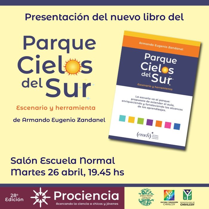 Seguidamente, Zandanel informó: “Los principales oradores, en principio, serán: la antropóloga Alejandra Roca, la astrónoma Gloria Dubner; la antropóloga Ana Igareta y el divulgador científico Claudio Sánchez, a los que se suman profesores locales con mucha trayectoria. También vamos a presentar un libro de mi autoría denominado “Parque Cielos del Sur, escenario y herramienta” viene a decirle a los chivilcoyanos que este parque es público, que puede ser utilizado libremente para dar clases. En este texto les doy ideas de cómo pueden trabajar previamente y luego de la visita a este escenario, buscando extender el aula al parque y viceversa. Si esto funciona el Parque va a tomar otra dinámica, va a estar siempre ocupado por alumnos y docentes, y va a tomar el rol educativo que pensamos allá por el año 1995”.