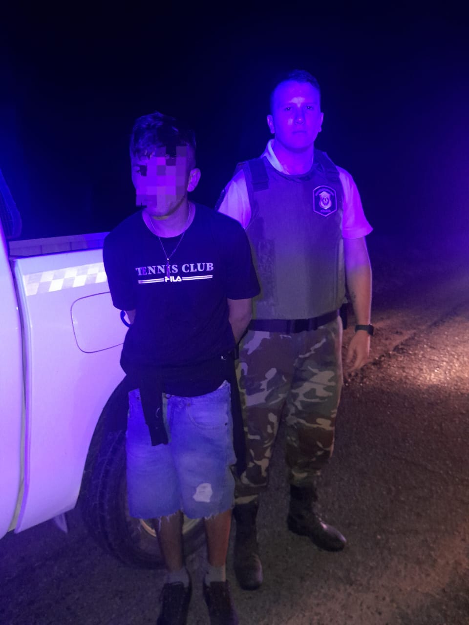 Los delincuentes circulaban en un automovil marca Volkswagen Voyage dominio ONS-579, que posee Pedido de Secuestro de fecha 18/12/2019 por ROBO, requerido por la Policia de Entre Ríos. Los mismos instantes antes sustrajeron pertenencias del interior de una vivienda de calle 7 nro. 90 mano izquierda de nuestra ciudad.