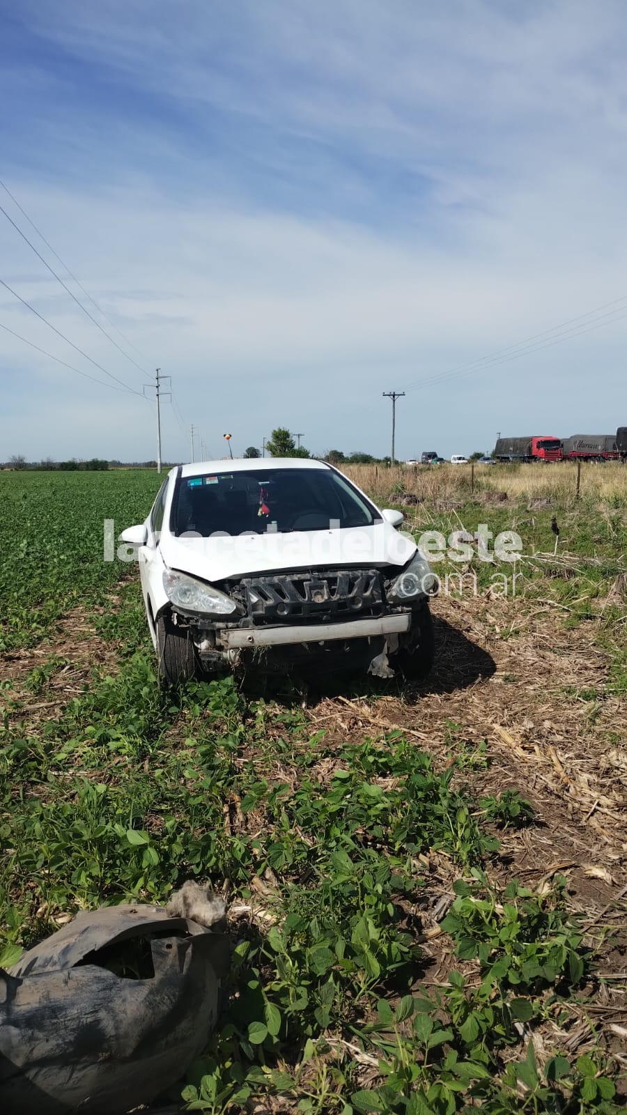 Por cuestiones que se tratan de establecer, la conductora de un automóvil perdió el control, despistó y volcó quedando a varios metros de la cinta asfáltica pasando la linea de alambrado de un campo.