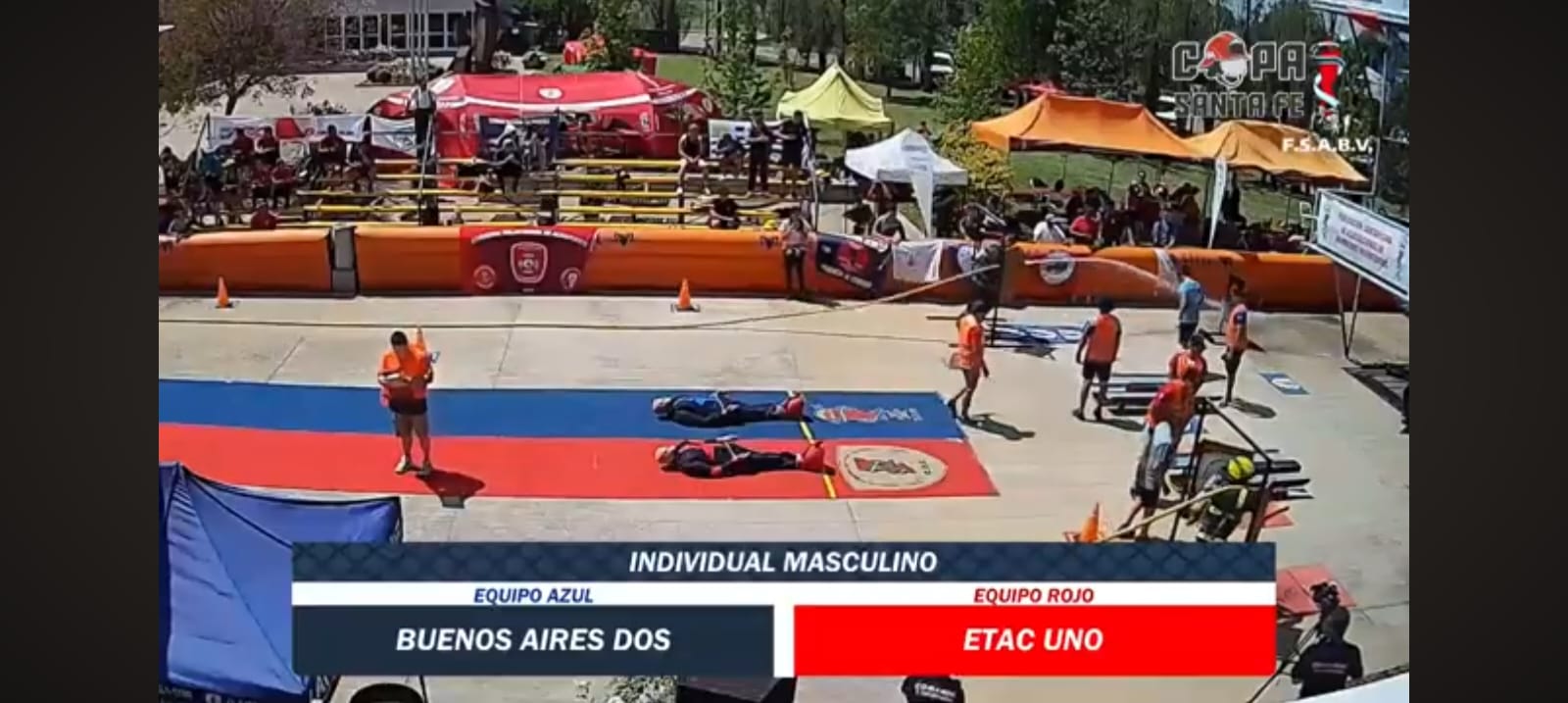 Durante la jornada, el bombero chivilcoyano realizó dos pasadas en el circuito completo. Incluye ascenso de torre con peso que equivale a cinco pisos, tracción de líneas, desplazamiento de cargas y arrastre de una víctima de 80 kilos. Todo se realiza con el equipo estructural completo. “Fueron dos minutos intensos, con más de cuarenta kilos de carga sobre el cuerpo. Es una prueba muy exigente, física y mentalmente”, relató.