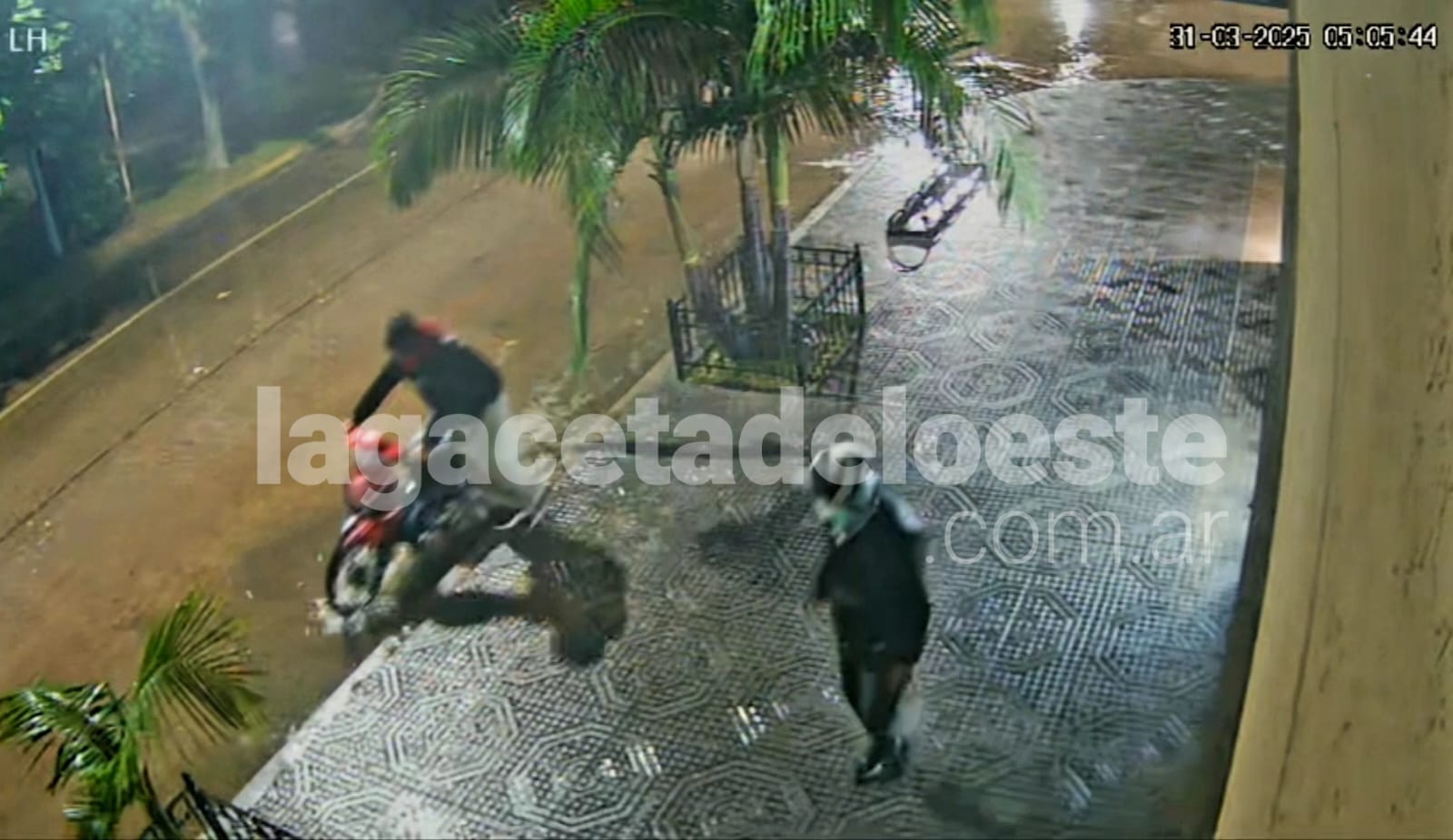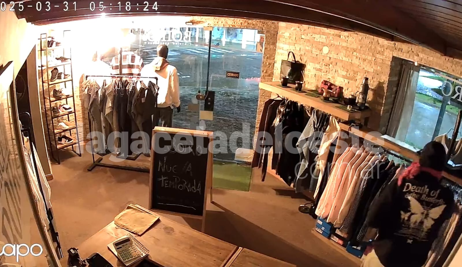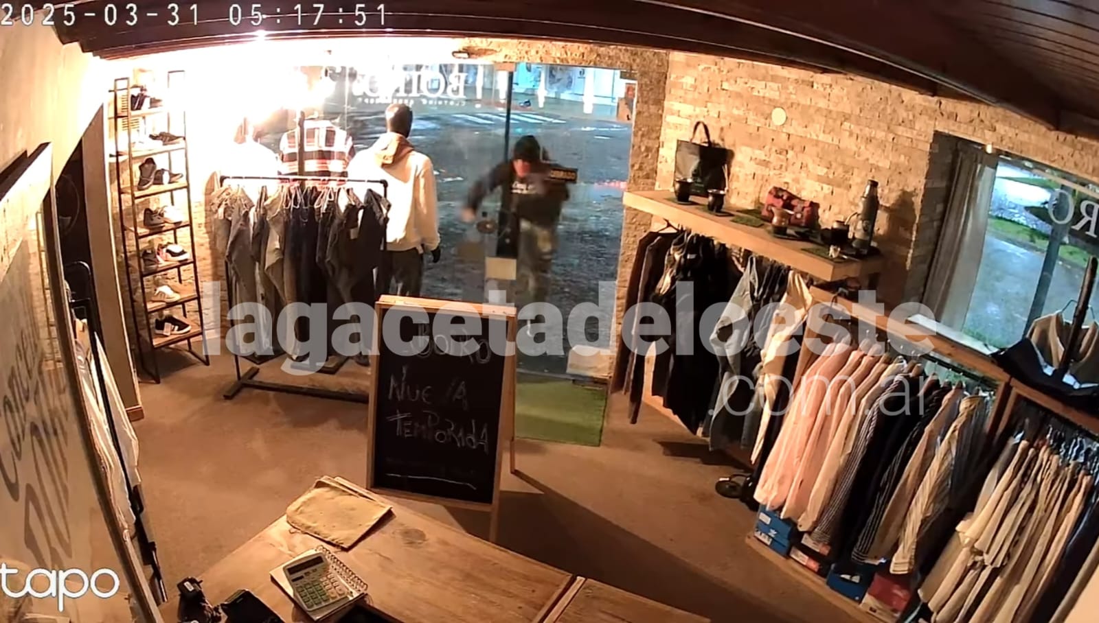 Similar situación se vivió en un comercio de venta de indumentaria en calles 25 de mayo y Brandsen. Se registró la llegada de dos delincuentes en moto, uno desciende la misma y patea violentamente el vidrio de la puerta de ingreso y roba pertenencias dándose a la fuga rápidamente.