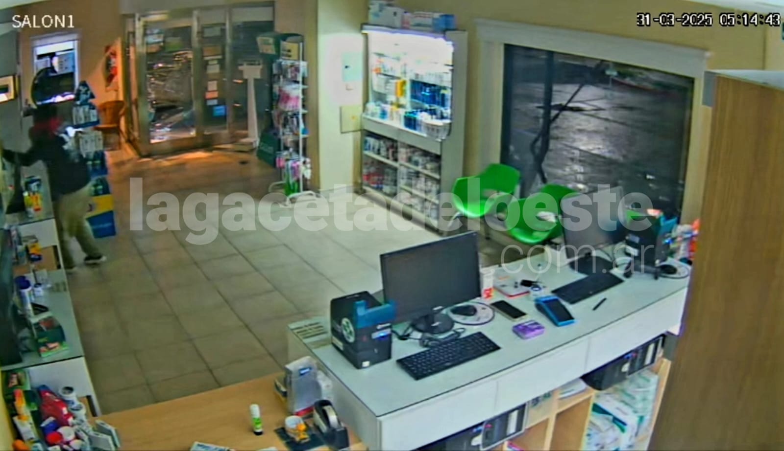 Según se observa, el individuo logró forzar la entrada pateando violentamente el vidrio del local. La farmacia se encontraba de turno por lo que el delincuente se sorprendió al advertir la presencia de un empelado y gracias a la rápida reacción del personal, que emitió un grito de alerta, el intruso huyó sin llevarse nada.