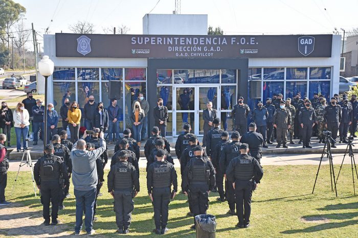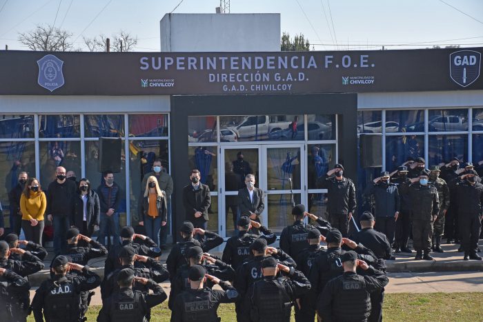 Se llevó a cabo el acto de inauguración de la base del Grupo de Apoyo Departamental (GAD) Sección Chivilcoy perteneciente a la Superintendencia de Fuerzas de Operaciones Especiales, encabezado por el intendente Guillermo Britos y el superintendente de las F.O.E. comisario Mayor Walter Chiucaloni, que está asentada en la esquina de las avenidas Urquiza y B. de Irigoyen.
