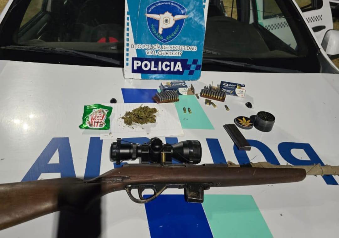 En el interior del vehículo se encontró, de forma oculta, un arma de fuego semiautomática calibre 22 largo, con varios proyectiles intactos para su uso, además de un envoltorio plástico que contenía marihuana.
