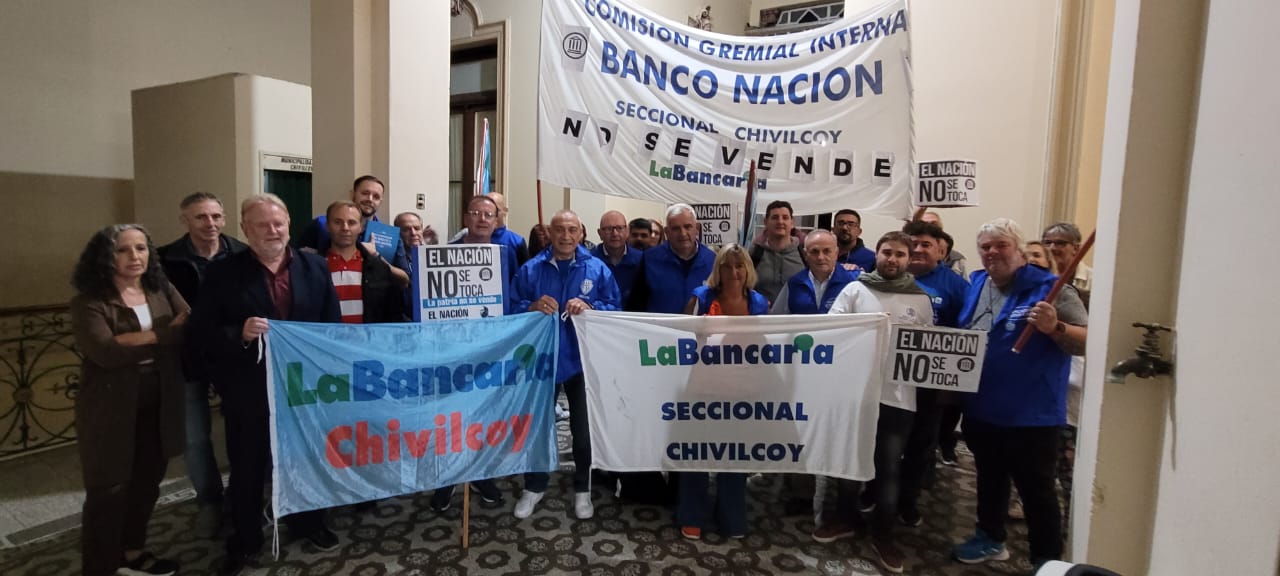 La concejal Natalia Giorgetti presentó en el Concejo Deliberante un Proyecto de Resolución expresando “el absoluto rechazo a cualquier intento de privatización, venta o transformación en Sociedad Anónima del Banco Nación Argentina impulsado por el gobierno nacional. En el recinto se hicieron presentes empleados bancarios, dirigentes gremiales y representantes de la Asociación Bancaria.