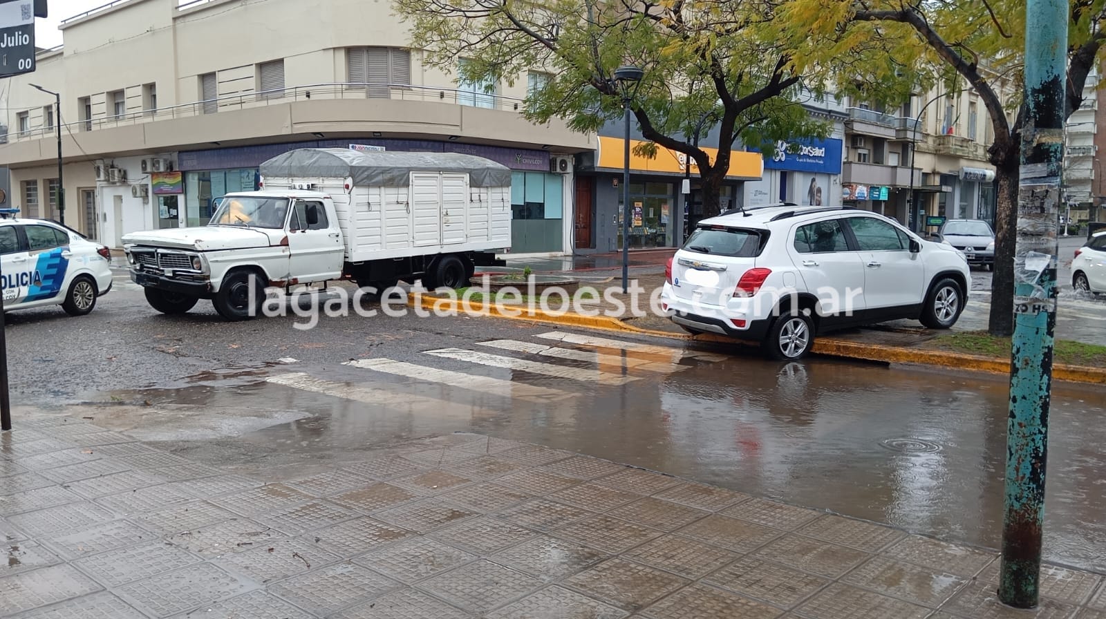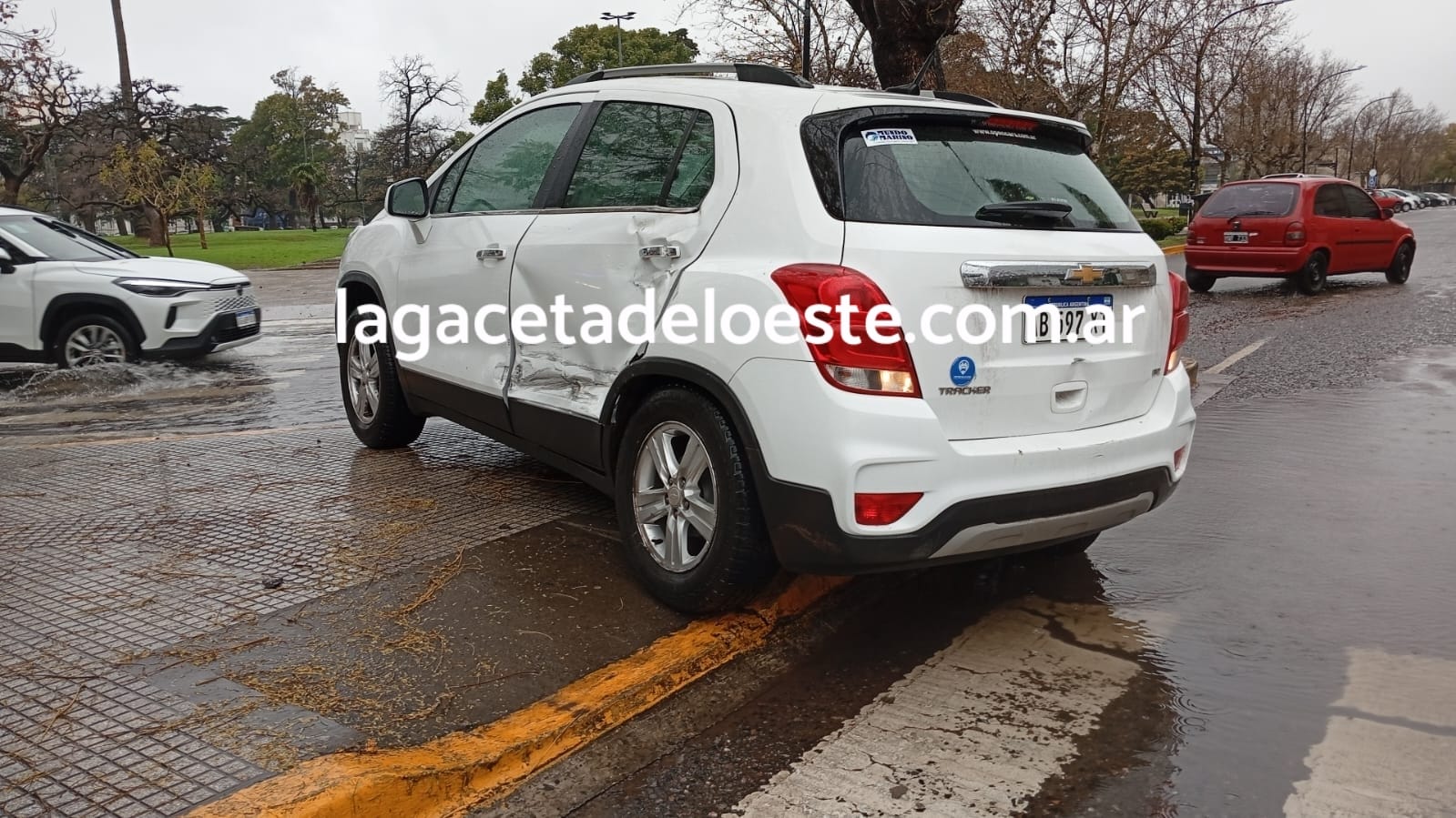 Según los primeros datos, la camioneta de mayor porte circulaba por Hipólito Yrigoyen cuando impactó en el lateral izquierdo —a la altura de la puerta trasera— de la Tracker, que quedó sobre la isla de la intersección tras el choque.