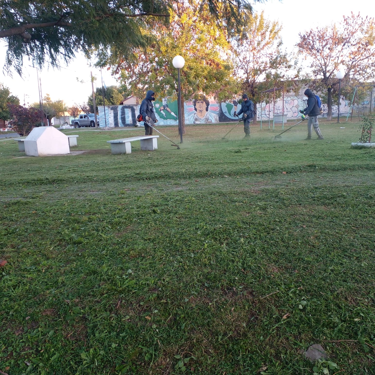 Además, destacó que las cuadrillas comienzan su labor desde muy temprano, incluso en condiciones climáticas adversas, y que las tareas no solo implican mantenimiento, sino también reparación y mejora del mobiliario urbano.