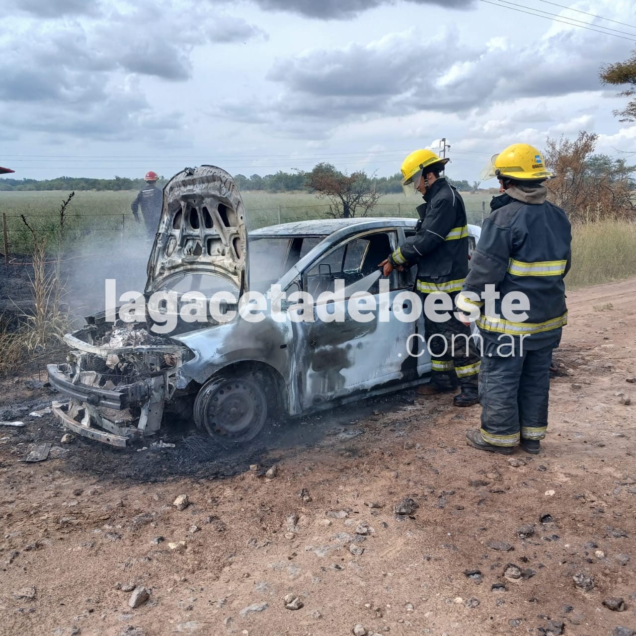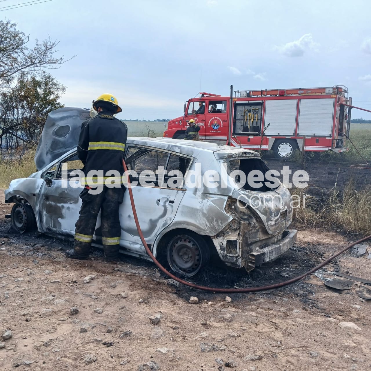 Poco antes de las 16 horas del sábado, se alertó al 911 por un incendio vehicular en Ruta 5 a la altura del kilómetro 143 en inmediaciones de Gorostiaga sobre un camino rural.
