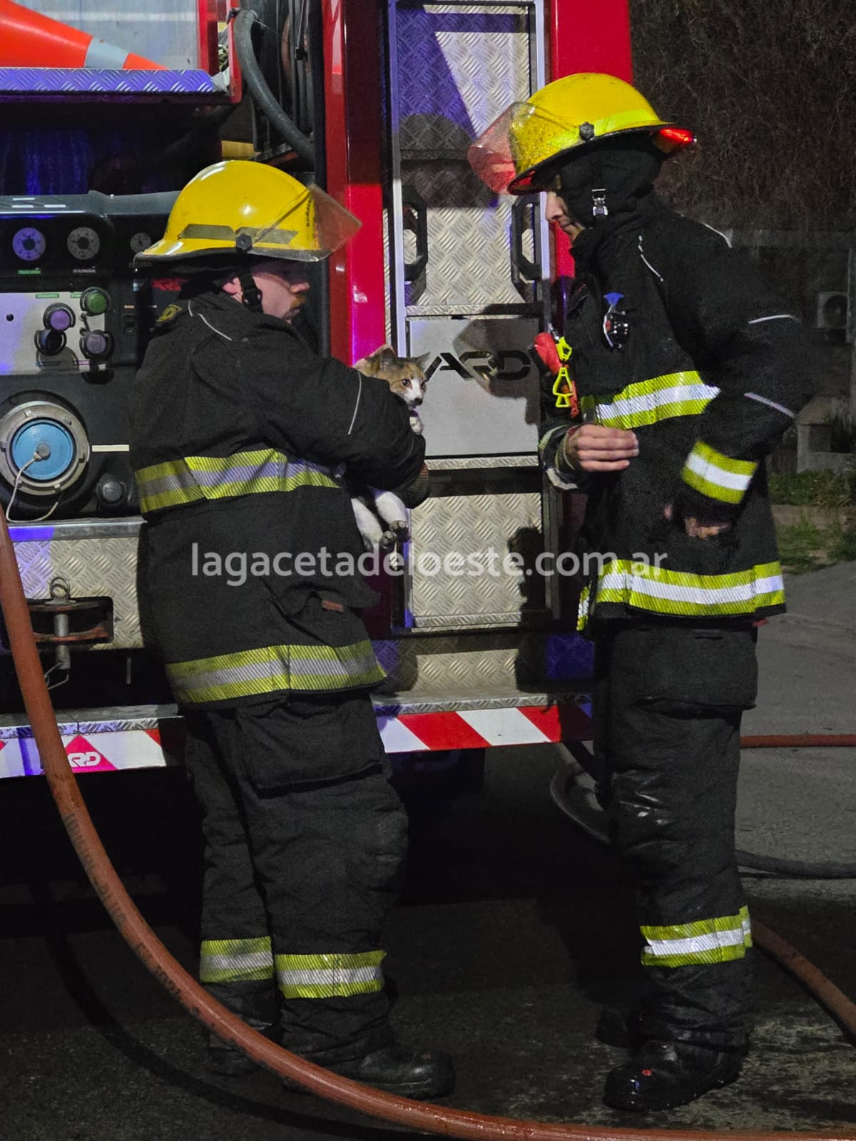 En paralelo, los bomberos realizaron una búsqueda en el interior de la casa. Esto fue ante la posibilidad de que el propietario estuviera adentro, lo que finalmente fue descartado. Sin embargo, rescataron a un gato que se encontraba entre el humo. Al felino se le administró oxígeno antes de devolverlo a su dueño.