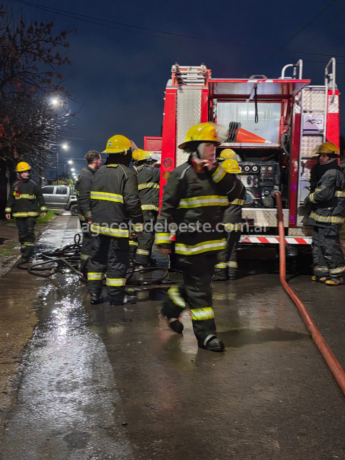 En la primera dotación de bomberos a cargo del Suboficial Cristian Galotta constatan que el incendio estaba declarado y alertados por la posibilidad que hubiera personas comienzan a buscarla hasta confirmar que no había gente en la vivienda. La segunda unidad de bomberos a cargo del 3er Oficial Adrián Diciano se suma en las tareas para sofocar el incendio que fue atacado desde el frente habiendo forzado la puerta de ingreso y desde el patio en la parte trasera.