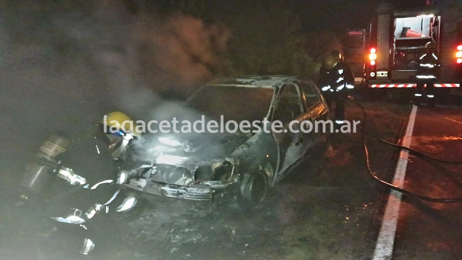 El rodado, que circulaba en dirección a Alberti, terminó destruido a pesar de los esfuerzos de los bomberos.