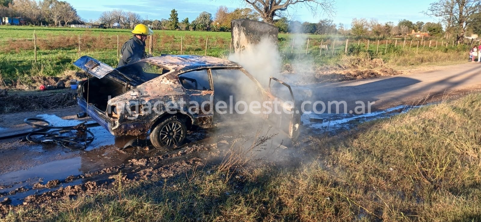 Al lugar concurrió personal de bomberos a cargo del 3er Oficial Emmanuel Artola, quienes constataron el incendio de un automóvil Ford Taunus, totalmente generalizado.