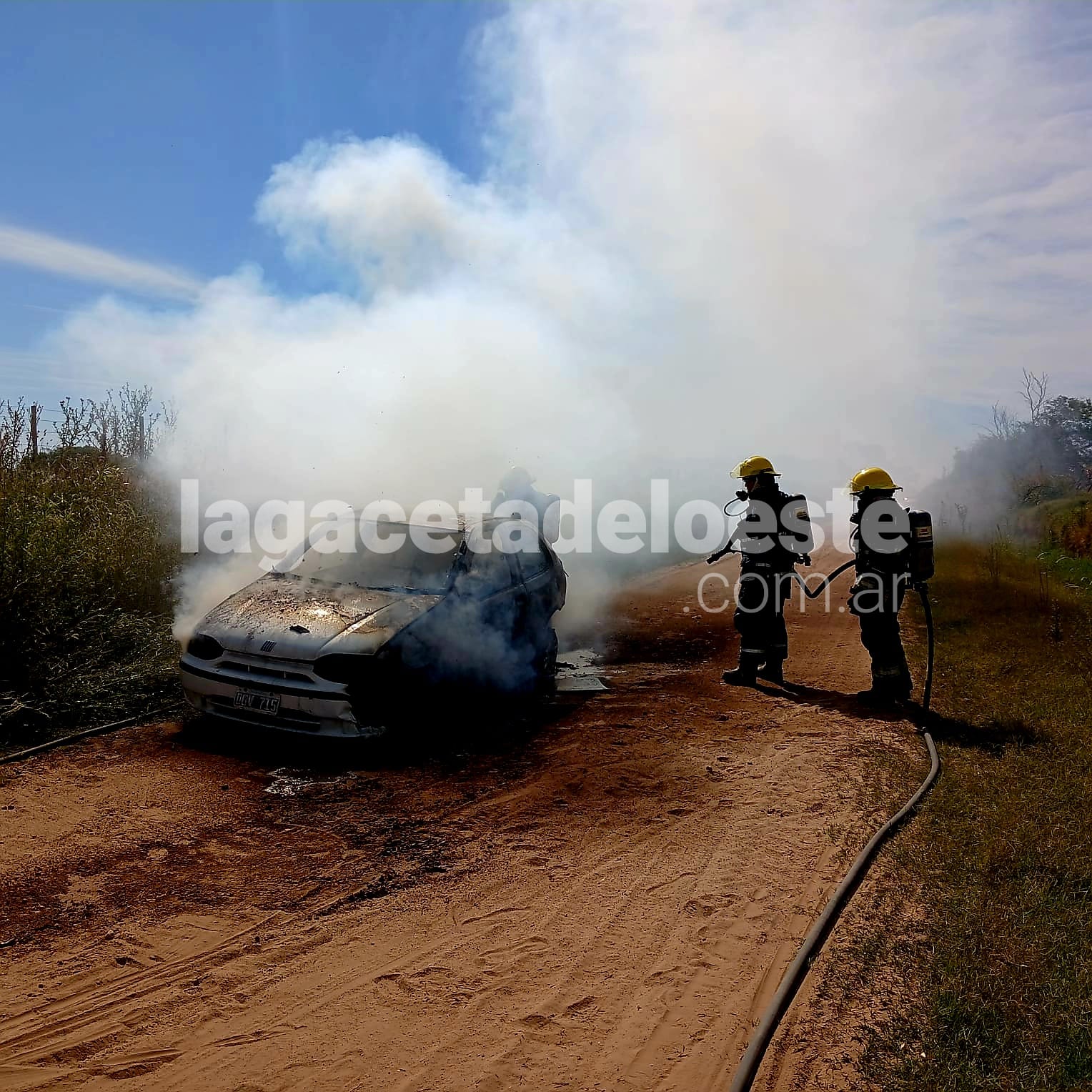 Una dotación de bomberos, liderada por el Oficial Emmanuel Artola, acudió al lugar y logró controlar el incendio. Luego de la tareas realizadas, explicó: «Nos alertan por un incendio vehicular, de la bajada de Ruta 5 en dirección a Biaus, bajando 2 kilómetros aproximadamente. El conductor refirió que venía circulando cuando empieza a percibir humo del tablero, detuvo la marcha y rápidamente se extendió por todo el vehículo».