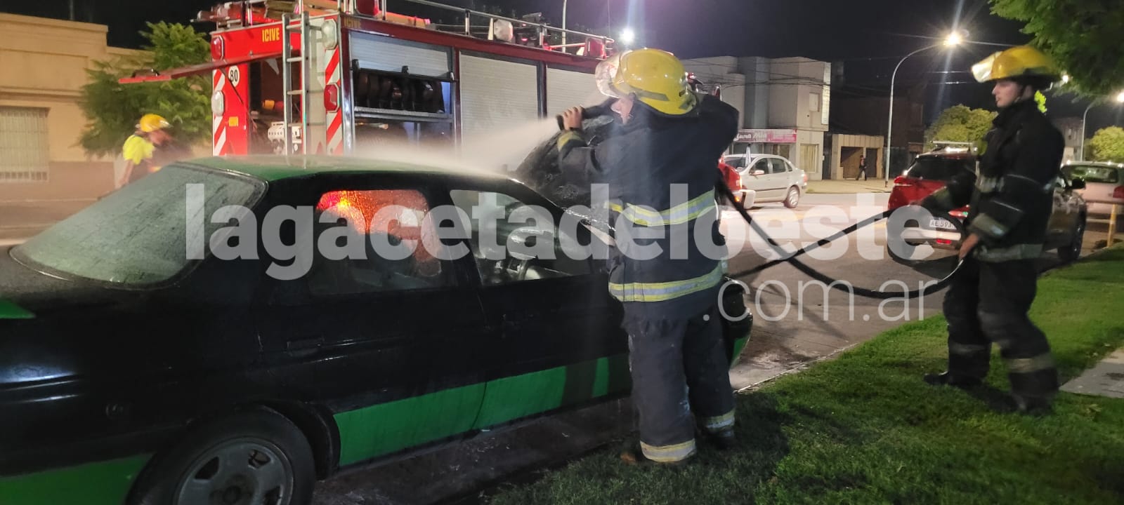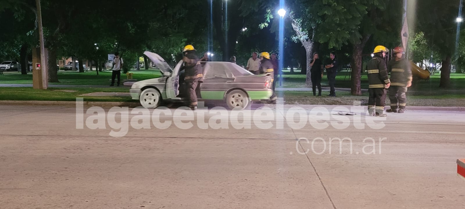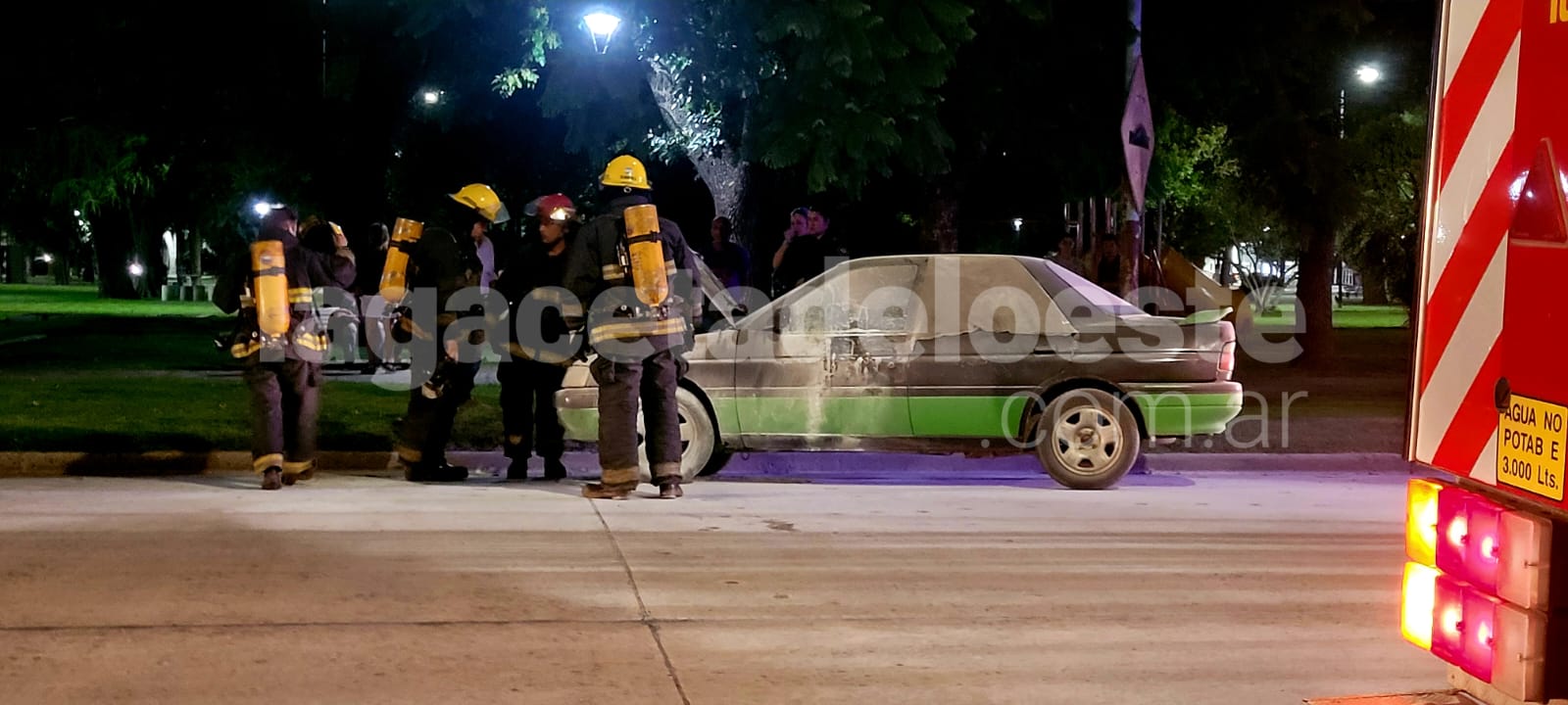 Personal policial, bomberos y SAME fueron convocados a las 20.50 del sábado por un incendio vehicular sobre la avenida Ortiz frente a la Plaza Moreno.