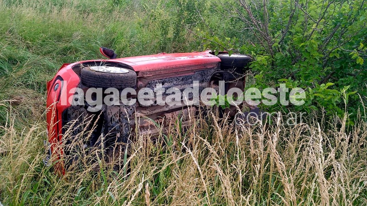 A las 17.05 fueron convocados por un vuelco de un automóvil Volkswagen UP en ruta 30 KM 450. Al llegar al lugar la única ocupante del automóvil había sido auxiliada por transeúntes y ya se encontraba fuera del mismo.