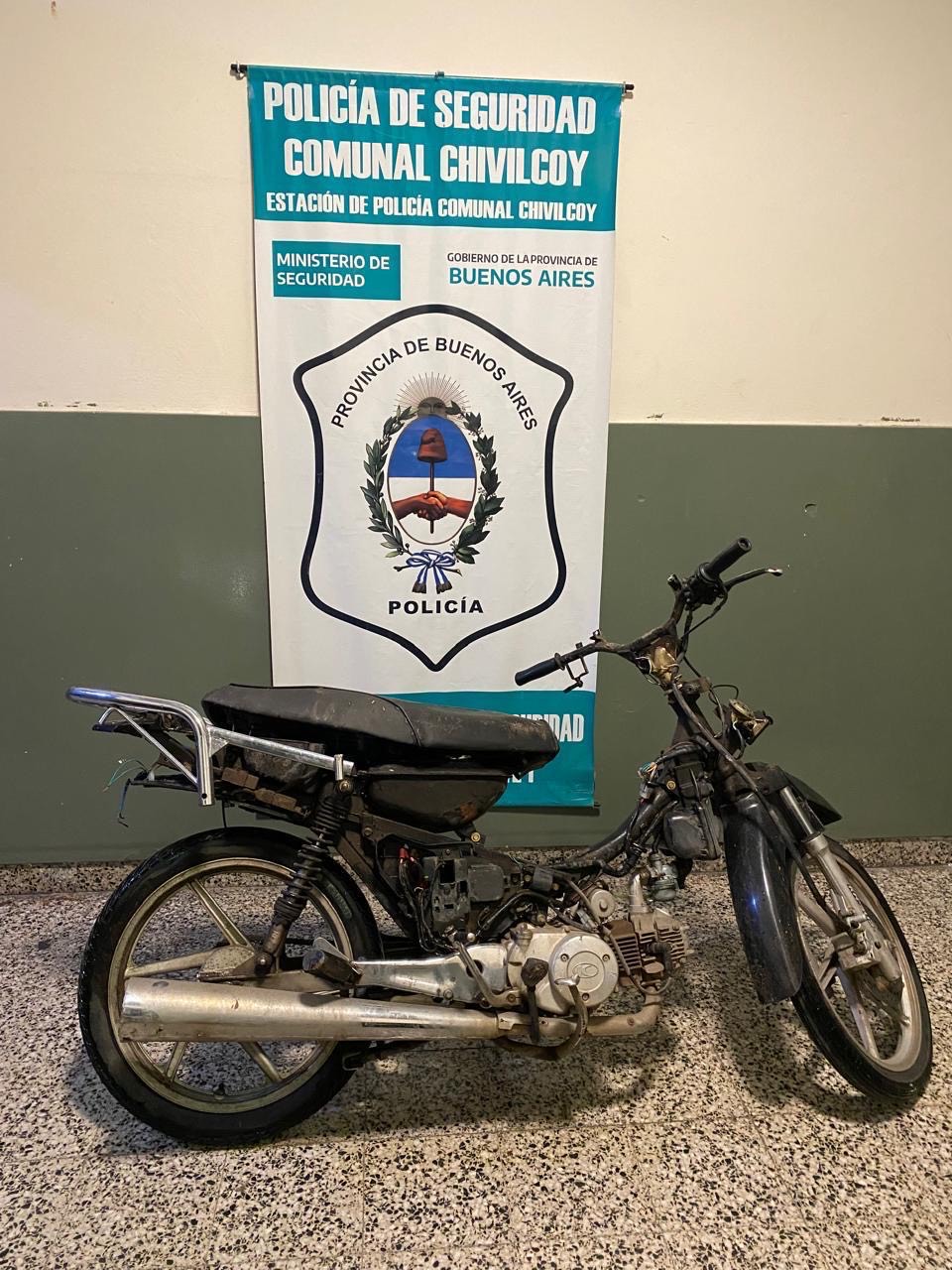 En el día de la fecha, personal de la Policía Comunal, en recorrida preventiva procedió en calles Viamonte y Pueyrredón, al traslado de un menor de 15 años domiciliado en Chivilcoy, quien instantes antes, en calles Dean Funes y Alem, mediante uso de ganzúa, dañó tambor de ignición, sustrayendo una motocicleta marca KIMCO 110cc Nro. cuadro 8CMKY011081A10543 y motor KB203911210.
