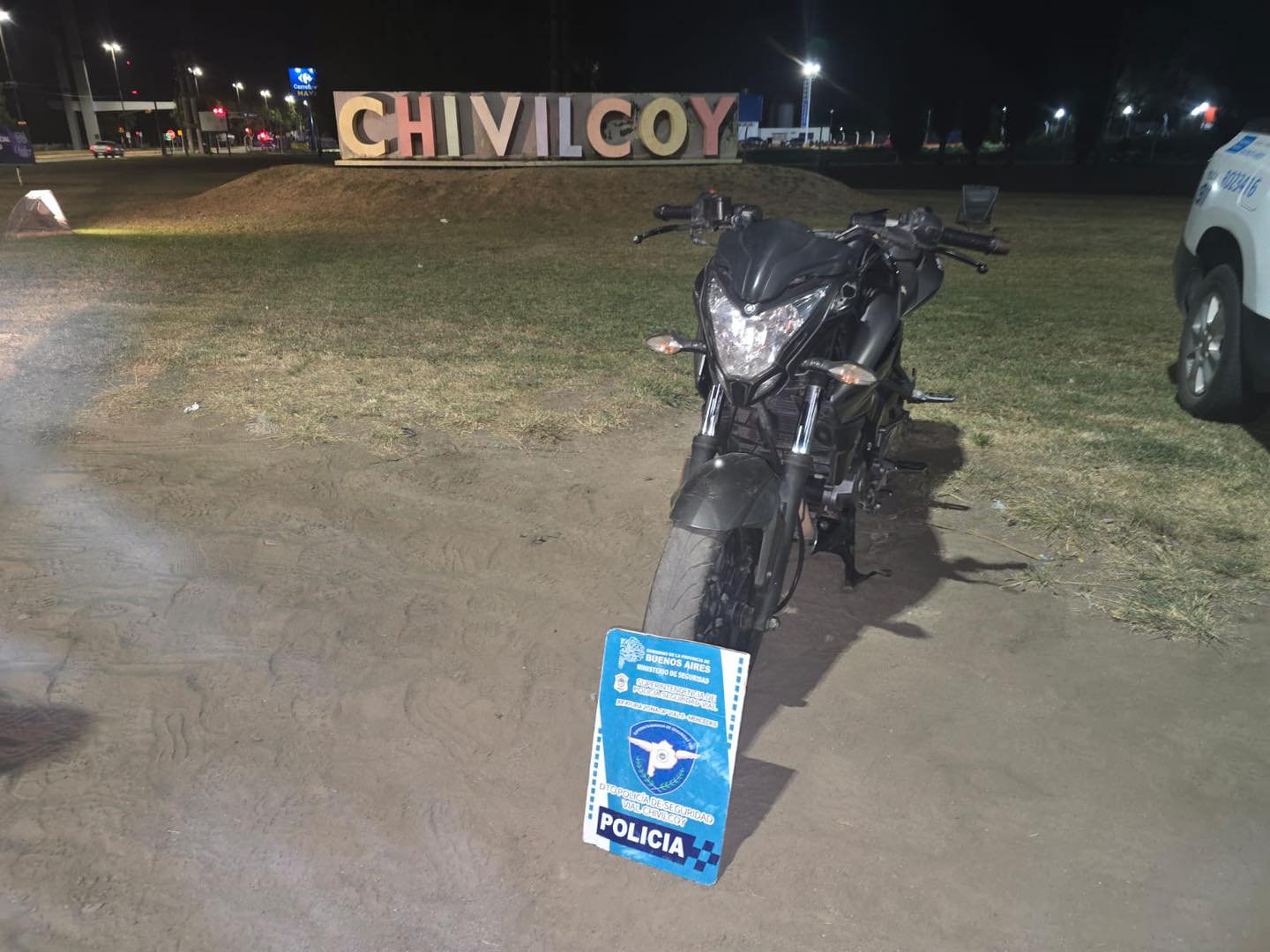 Se labraron actuaciones por infracción a la Ley 24.449, por circular sin documentación del motovehiculo, cédula de identificación, seguro vigente, licencia de conducir y casco, y las maniobras realizadas. La intervención quedó a cargo del Juzgado de Faltas de Chivilcoy, y se procedió al secuestro de la unidad.