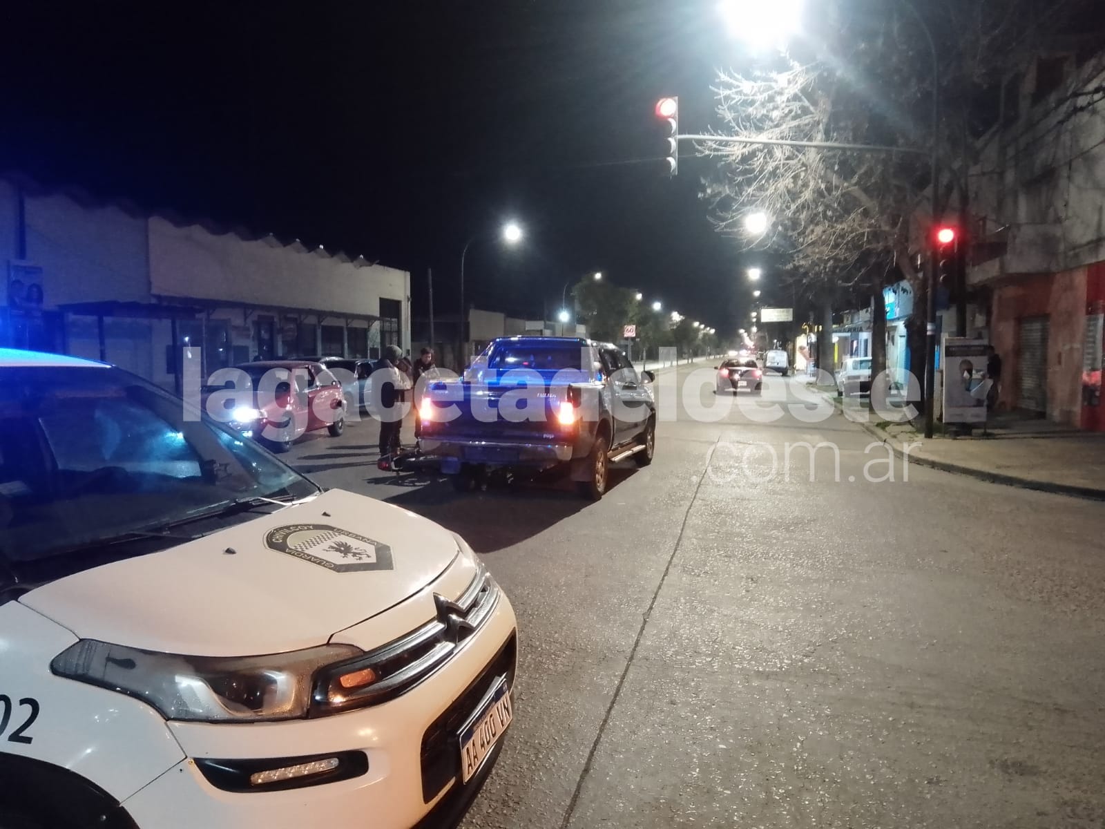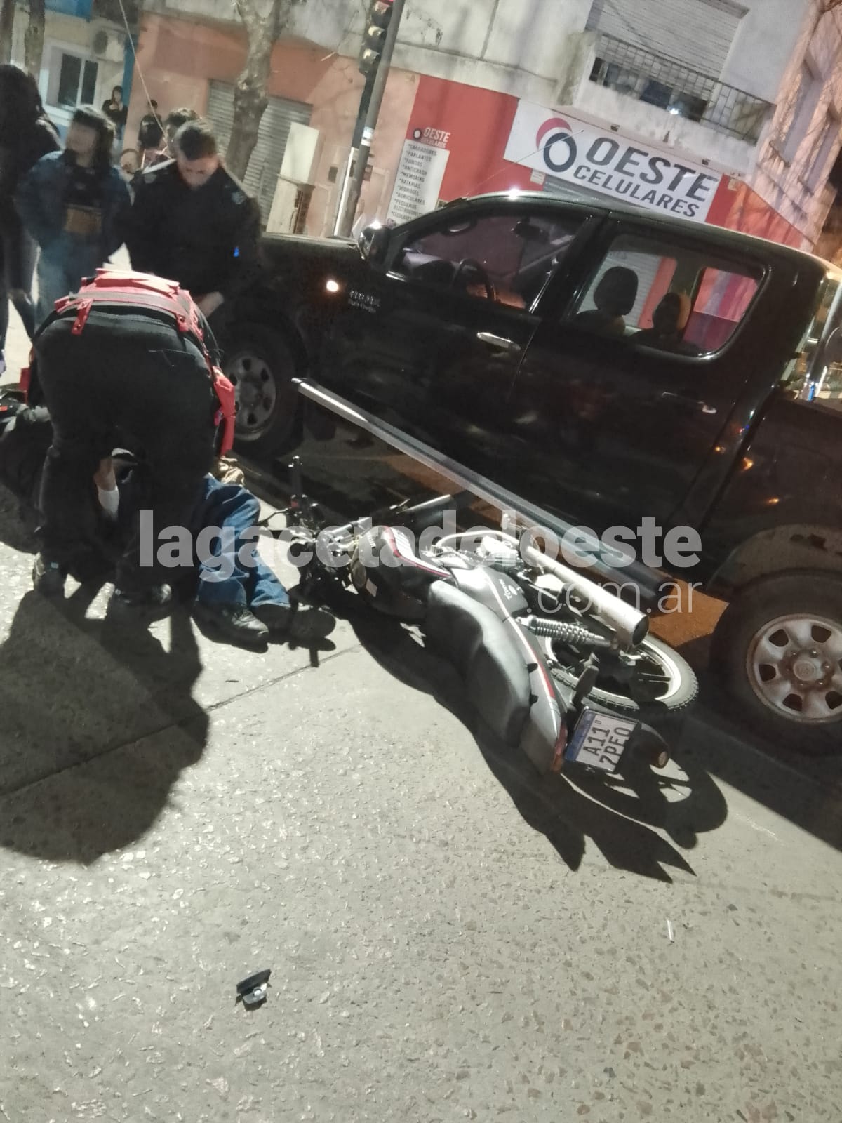 Se produjo una colisión en la intersección de avenidas Mitre y Francisco Laborde (84) entre una camioneta y una moto aproximadamente a las 22.45 del sábado. Luis Felipe Pineda a bordo de una moto marca Corven con dominio colocado A117 PE0 circulaba por avenida Mitre y al doblar hacia Francisco Laborde (84) fue embestido por una Toyota Hilux dominio colocado GVM 850 conducida por Jaqueline Calle Flores quien según testigos no advirtió el semáforo en rojo.