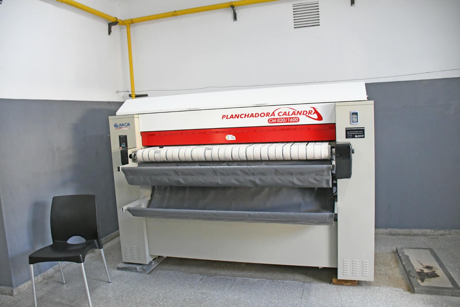 En tanto que, añadió: “Para el Lavadero, para lo cual se ha hecho una obra civil muy importante, se ha incorporado un lavarropas automático de 16 Kg, una secadora para 40 Kg y una planchadora calandra” y puntualizó que “en breve se incorporará un equipo con barrera sanitaria.
