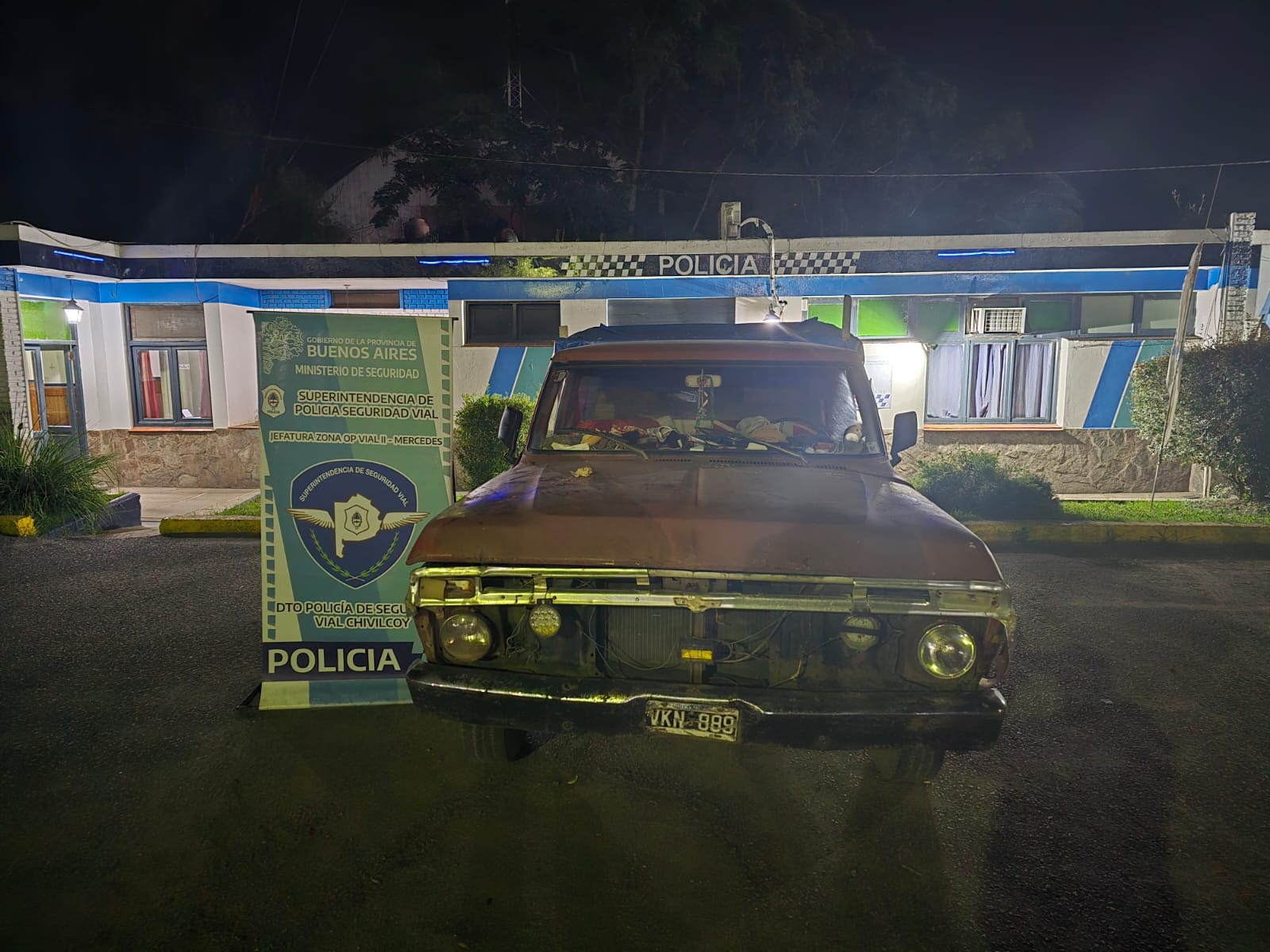 También se procedió a la interceptación de una pcik-up marca Ford modelo F-100, color rojo, dominio VKN-889, la cual circulaba sentido Bs. As.-Chivilcoy siendo sus ocupantes tres ciudadanos, LEONART GABRIEL, LEONART EDGAR URIEL y LOPEZ HUGO, todos mayores de edad, domiciliados en la ciudad de Mercedes, a quienes de la inspección de rodado se les secuestró armas de fuego una pistola sin marca ni numeración calibre 22 con su proyectil en recamara apta para disparar , una carabina: marca Pantera modelo 68 calibre 22 lr, serie 1068 y gran cantidad de proyectiles calibre 22, Sin su correspondiente documentación respaldatoria no justificándose procedencia, procediendo al secuestro de las armas de fuego y labrando actuaciones judiciales por el delito de Portación ilegal de Arma de Fuego, todo a disposición de la justicia interviniente en Turno del Dpto. Judicial Mercedes.